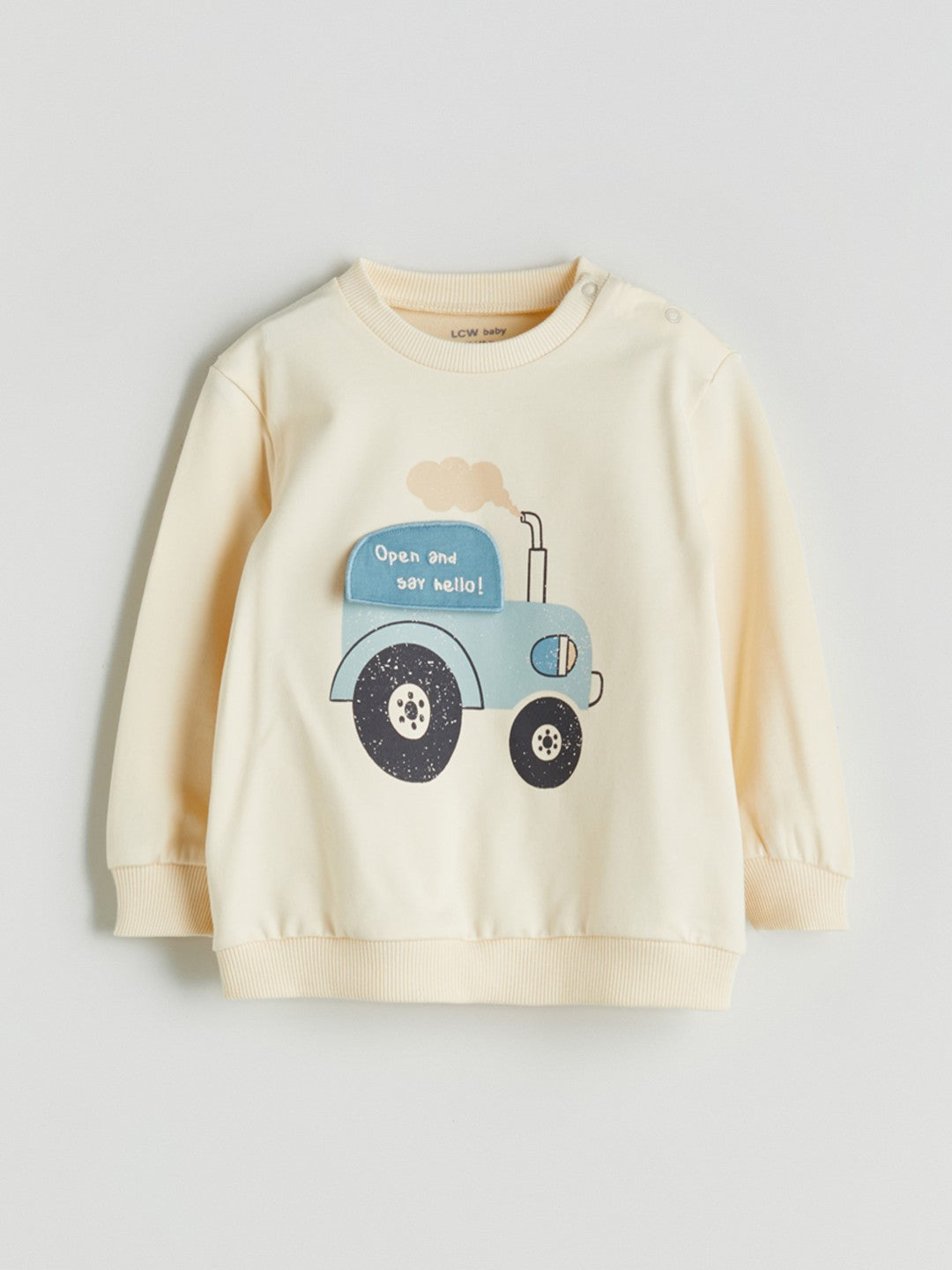 LCW Baby Beige Crew Neck Printed Baby Boy Sweatshirt And Tracksuit Bottom 2-Pack