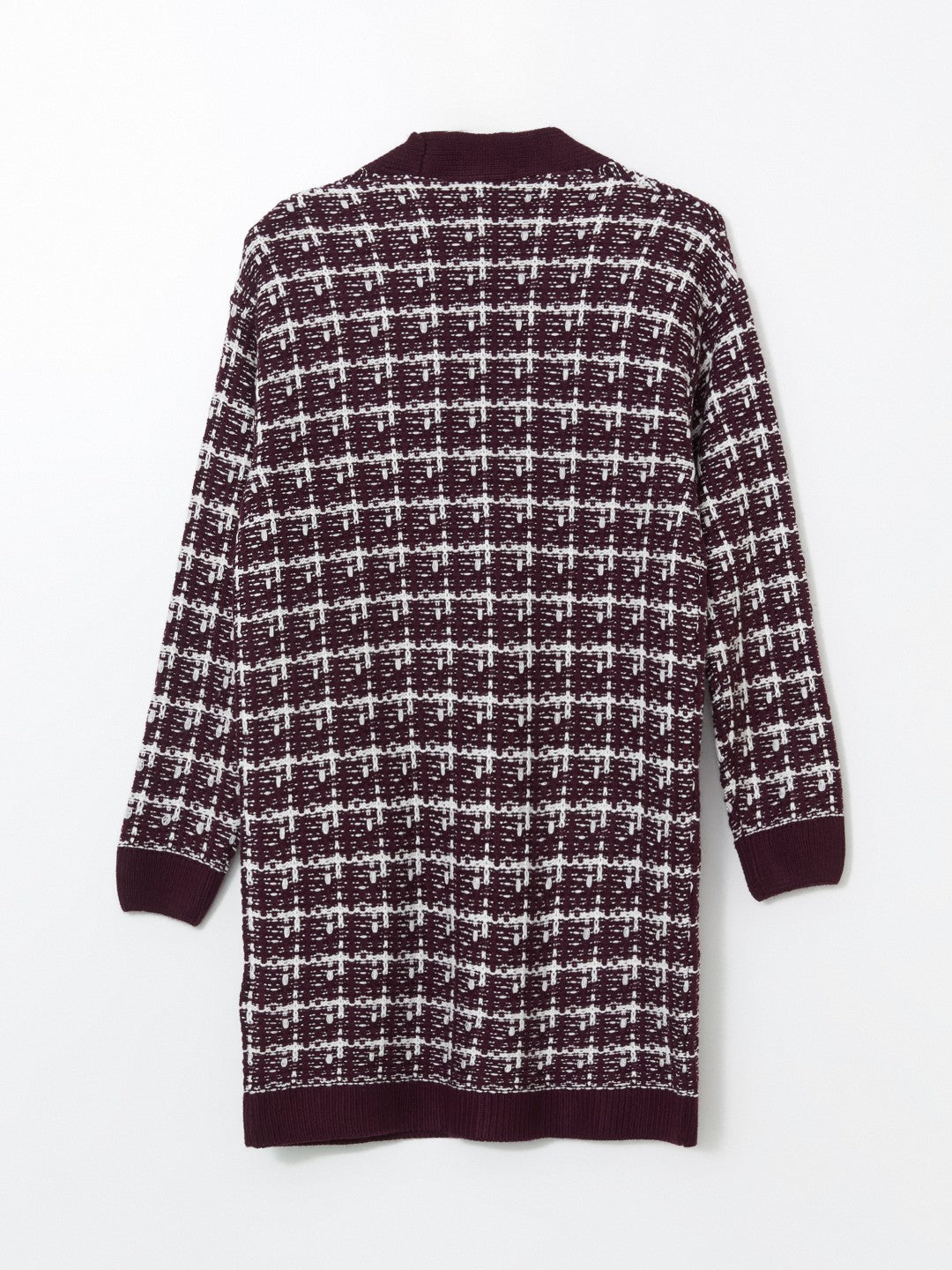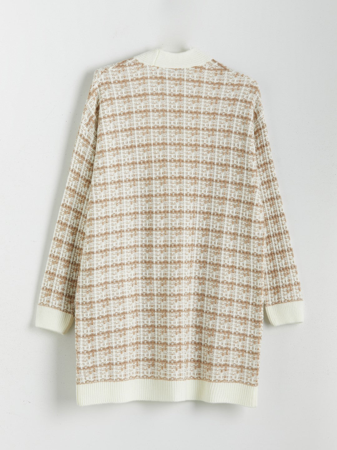 LCW Classic Brown V-Neck Patterned Women Knitwear Cardigan