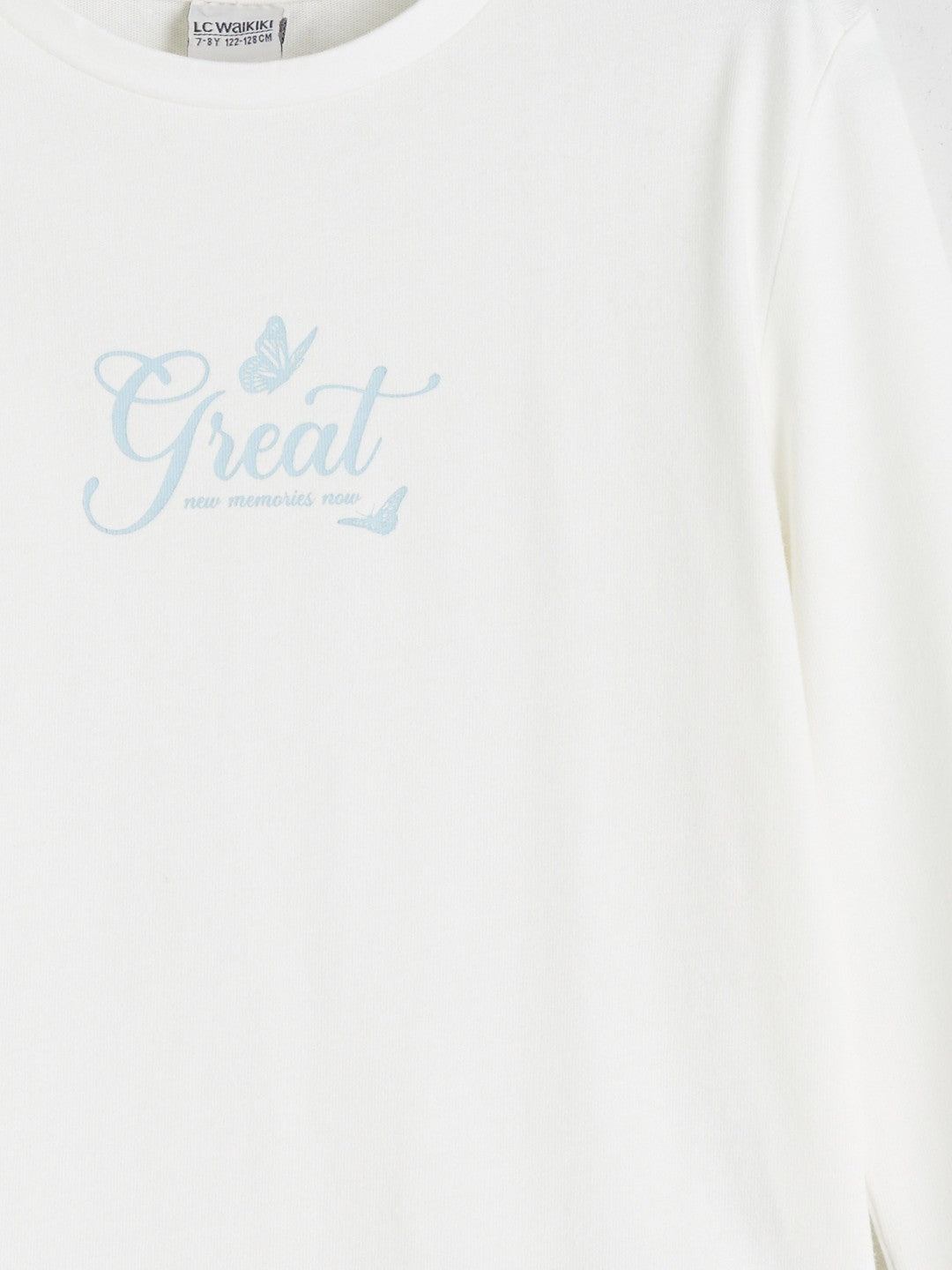 LCW Kids Ecru Crew Neck Printed Girls T-Shirt 2-Pack