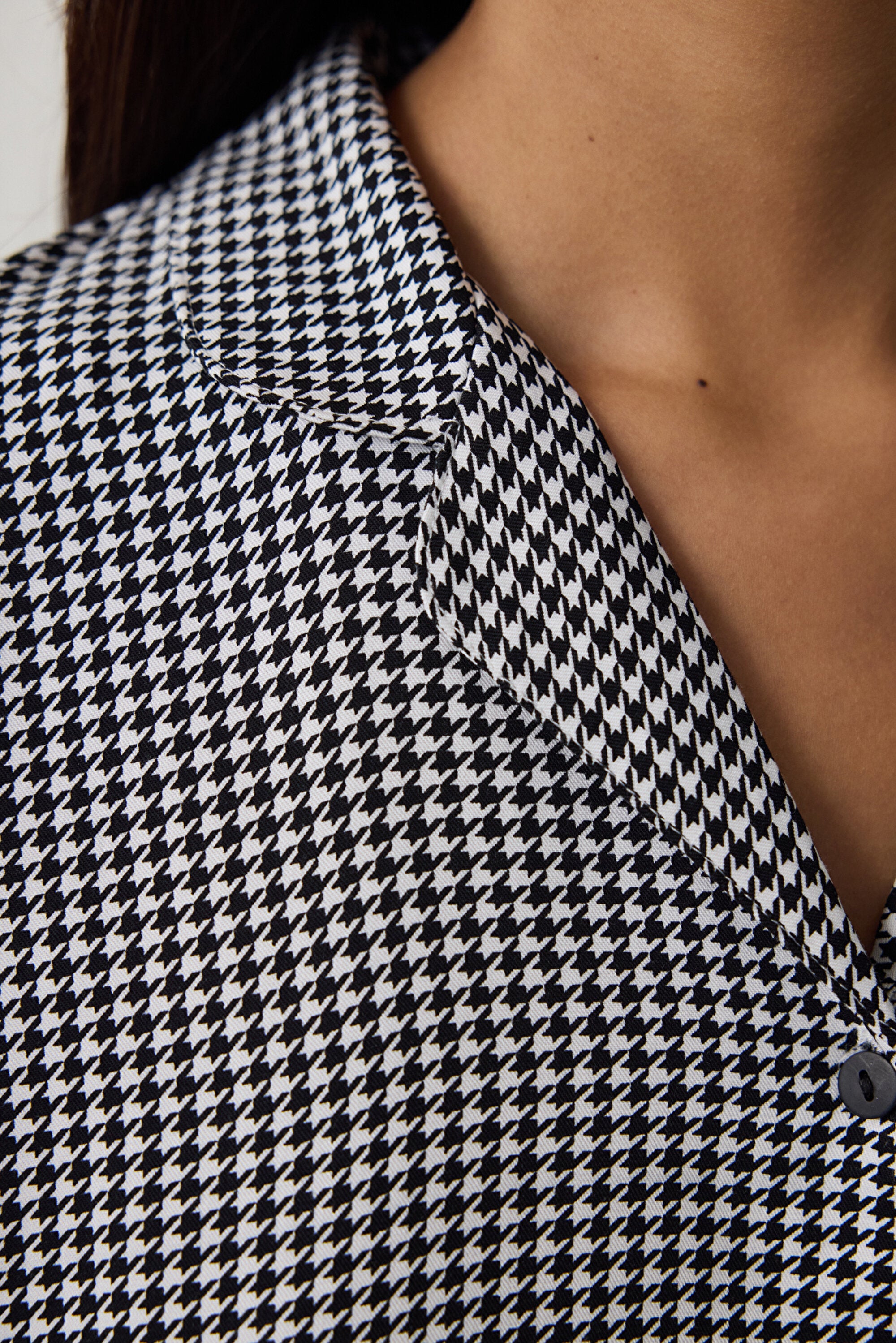 Black Bonjour Plaid Embroidered Shirt Collar Pajama Set