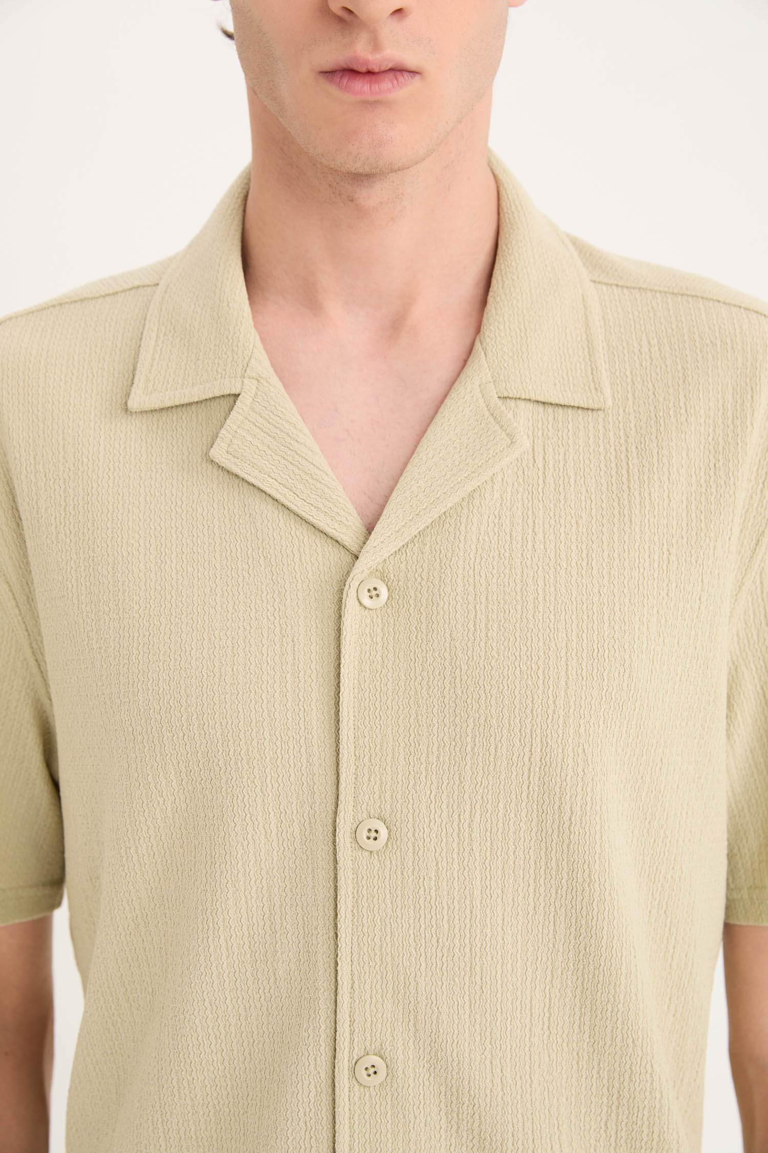 Modern Fit Polo Collar Textured Combed Cotton Short Sleeve Shirt