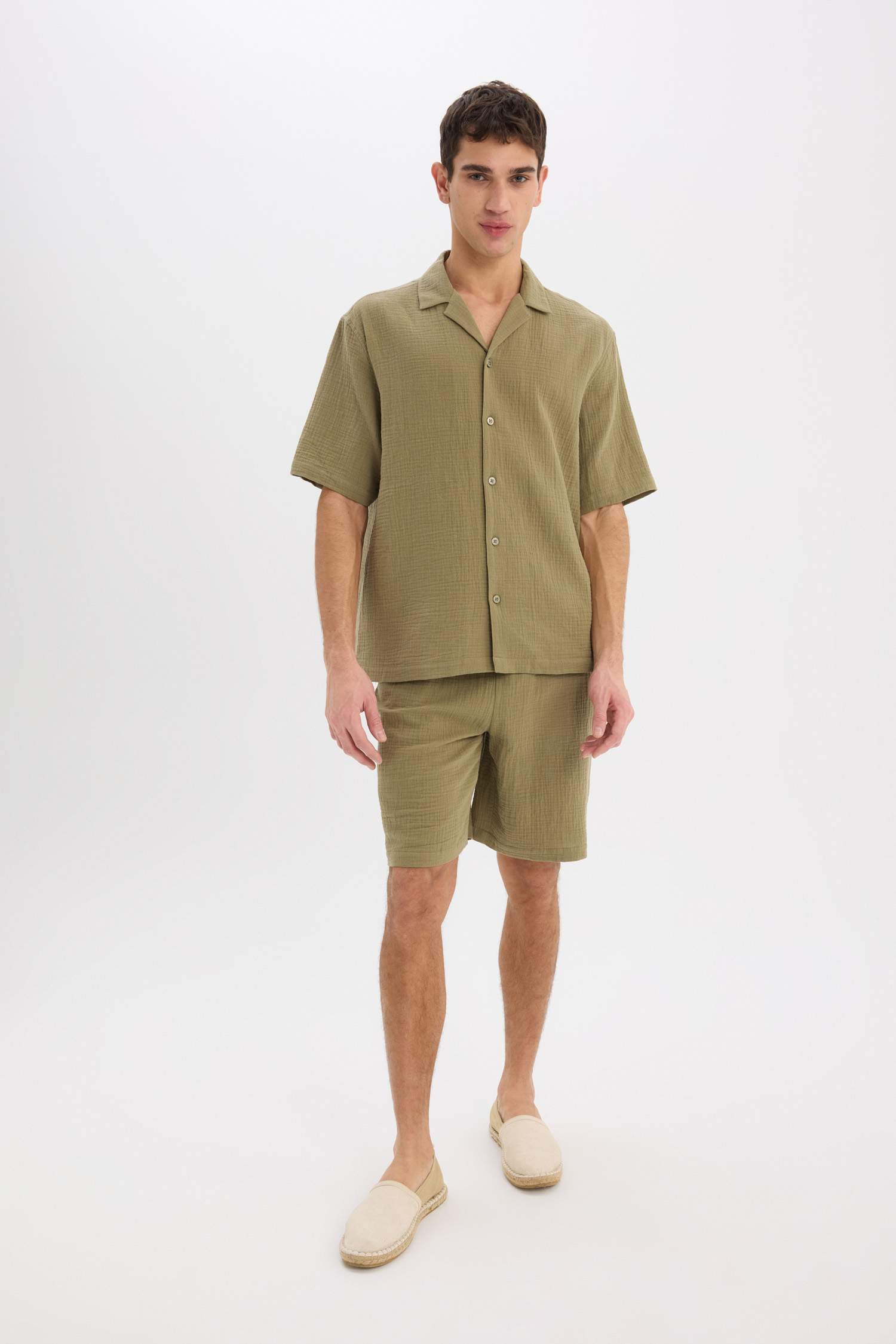 100% Cotton Relax Fit Polo Collar Cotton Summer Muslin Short Sleeve Shirt