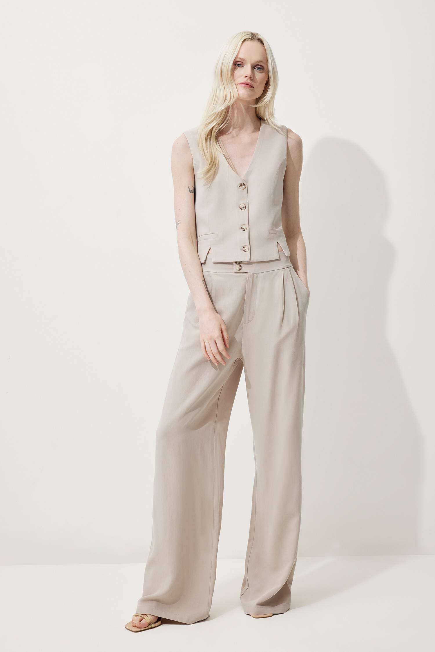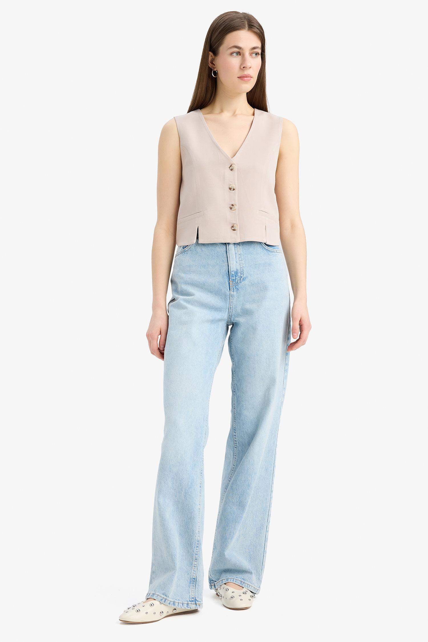 V Neck Linen Blend White Blazer Vest