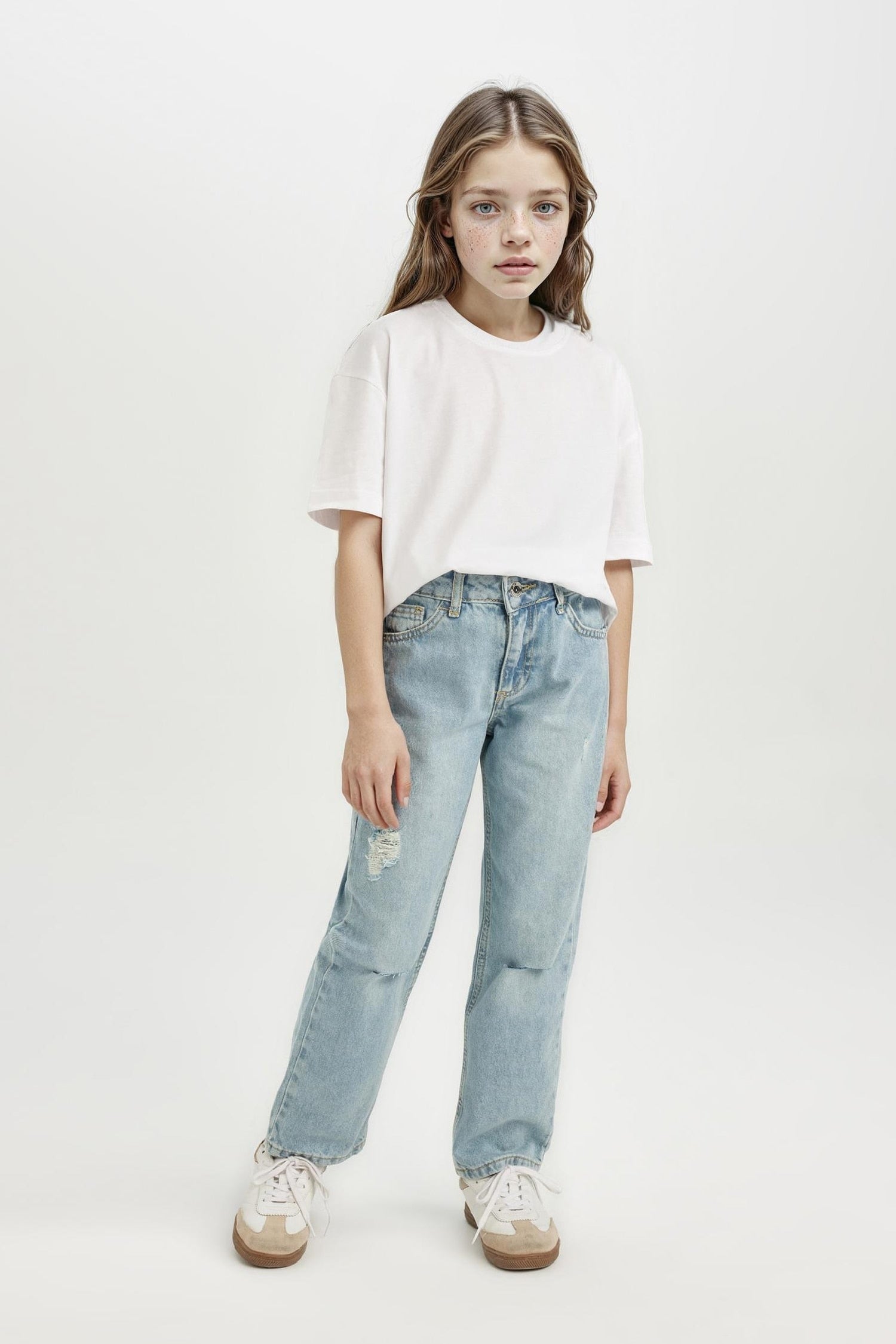 Girls Straight Fit Ripped Detailed Straight Leg Pocket Jeans