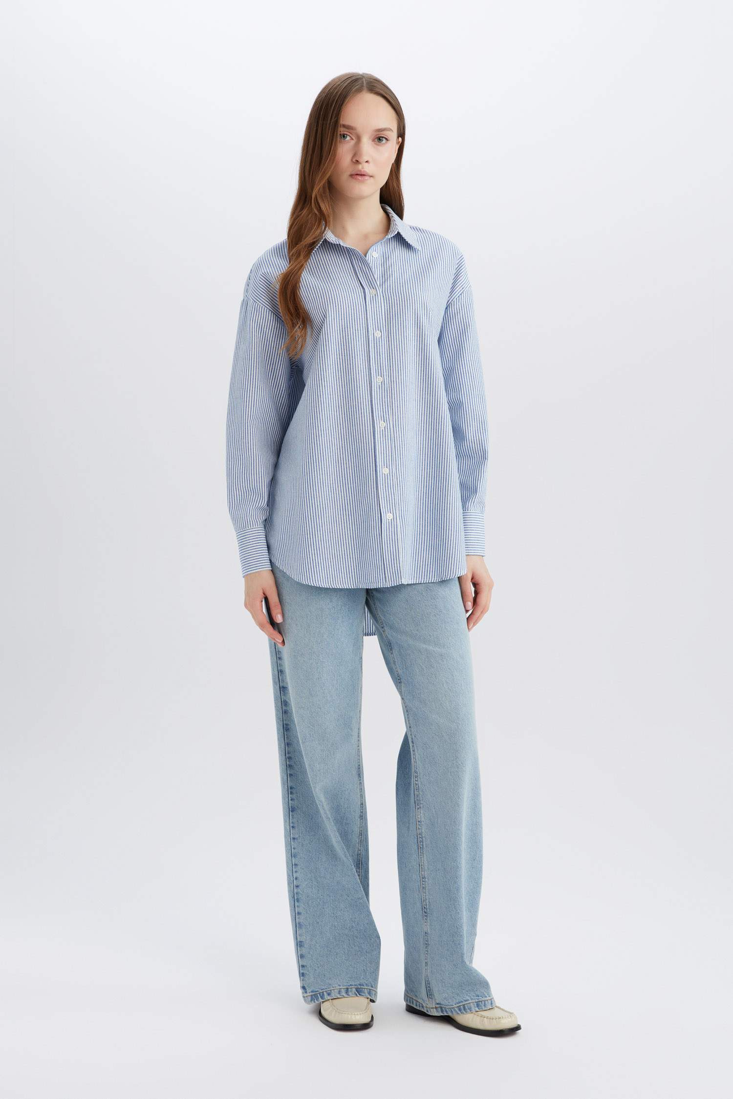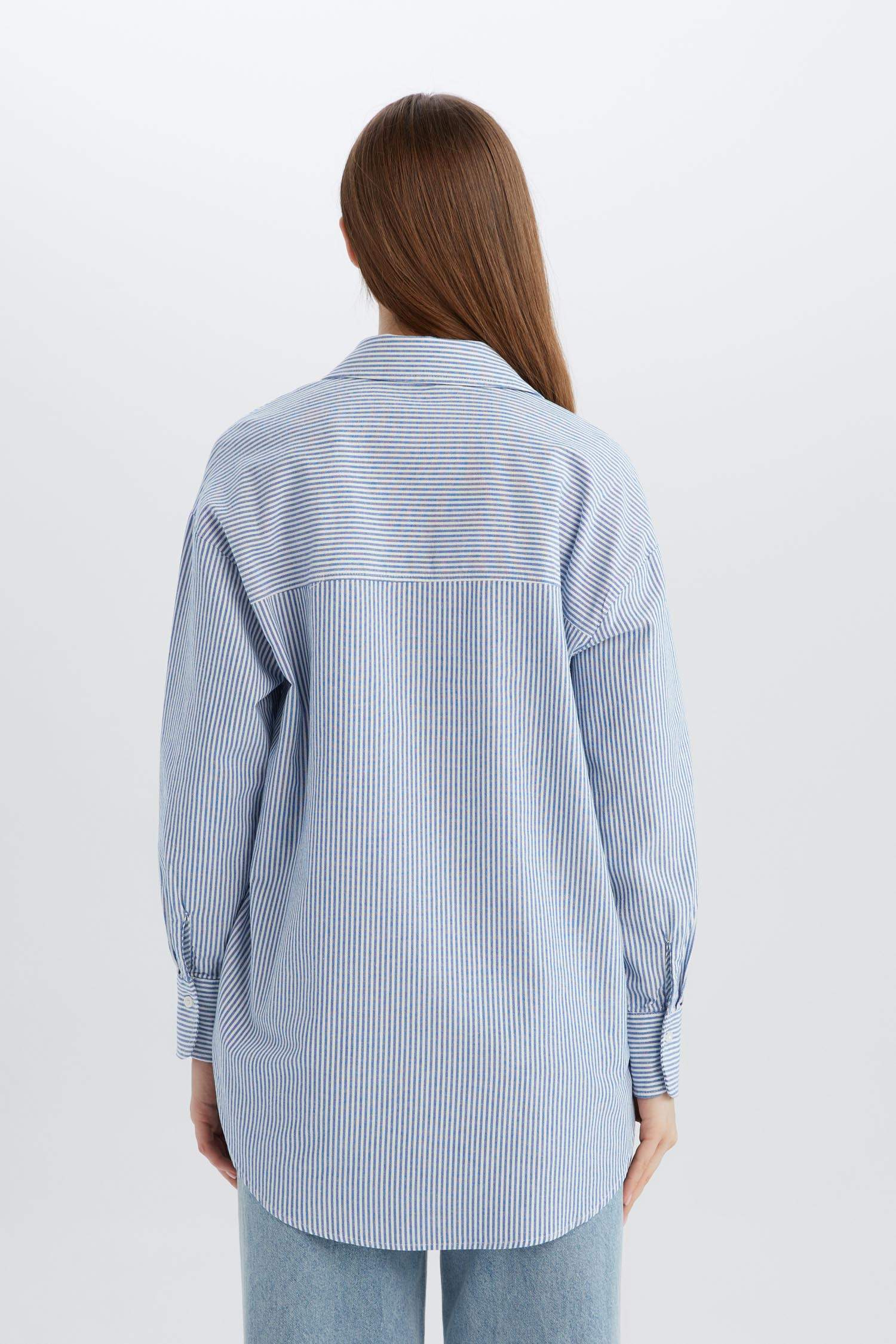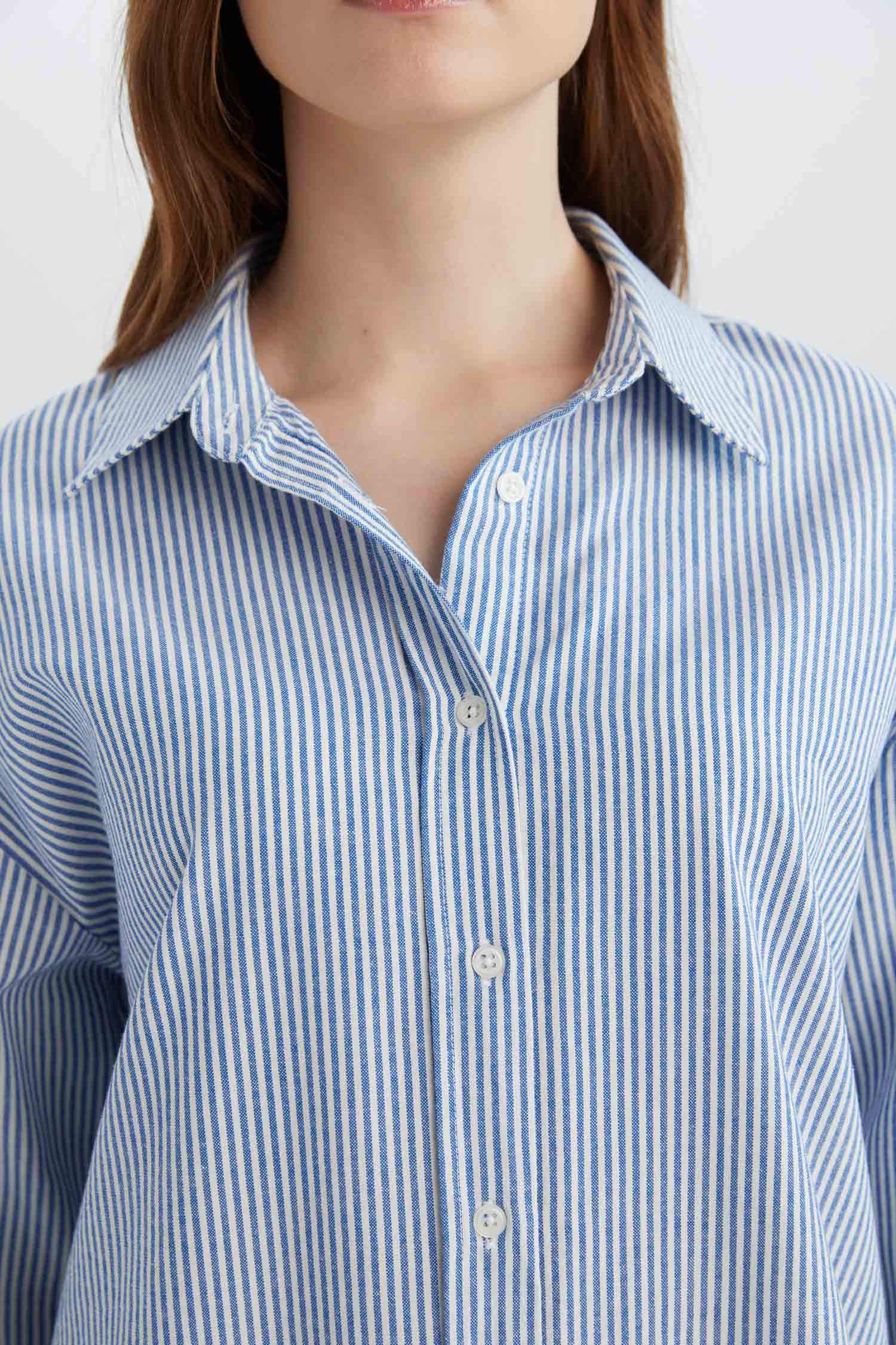 Relax Fit Striped Oxford Basic Long Sleeve Shirt Tunic