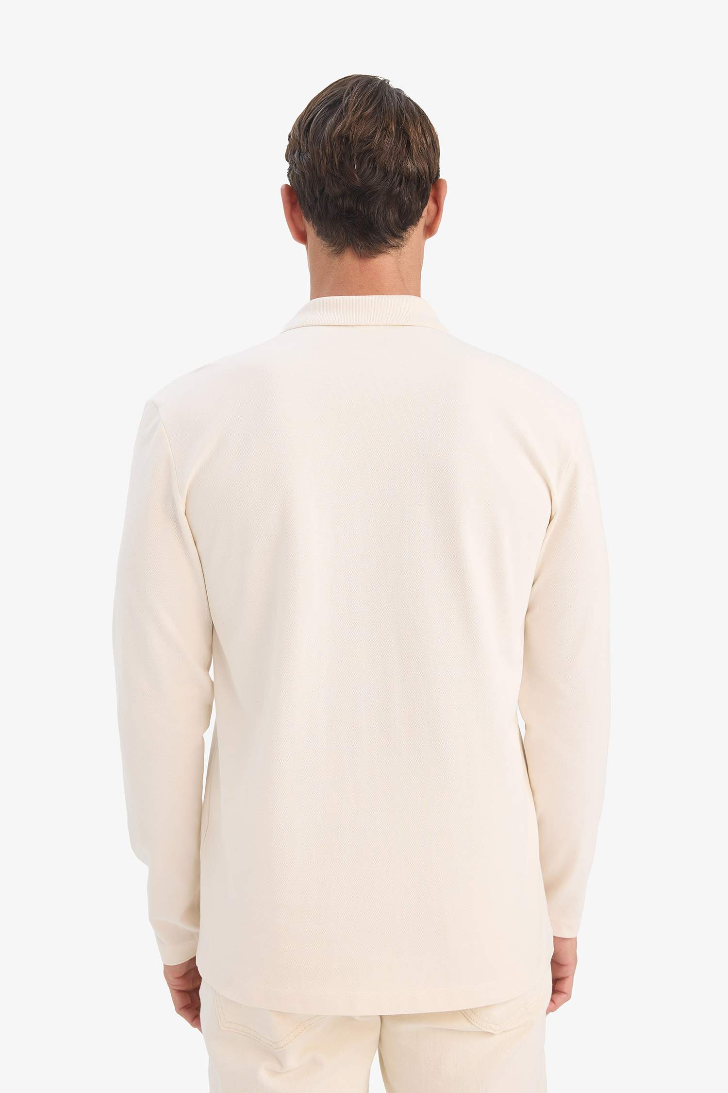100% Cotton New Regular Fit Basic Plain Long Sleeve Textured Pique Polo T-Shirt
