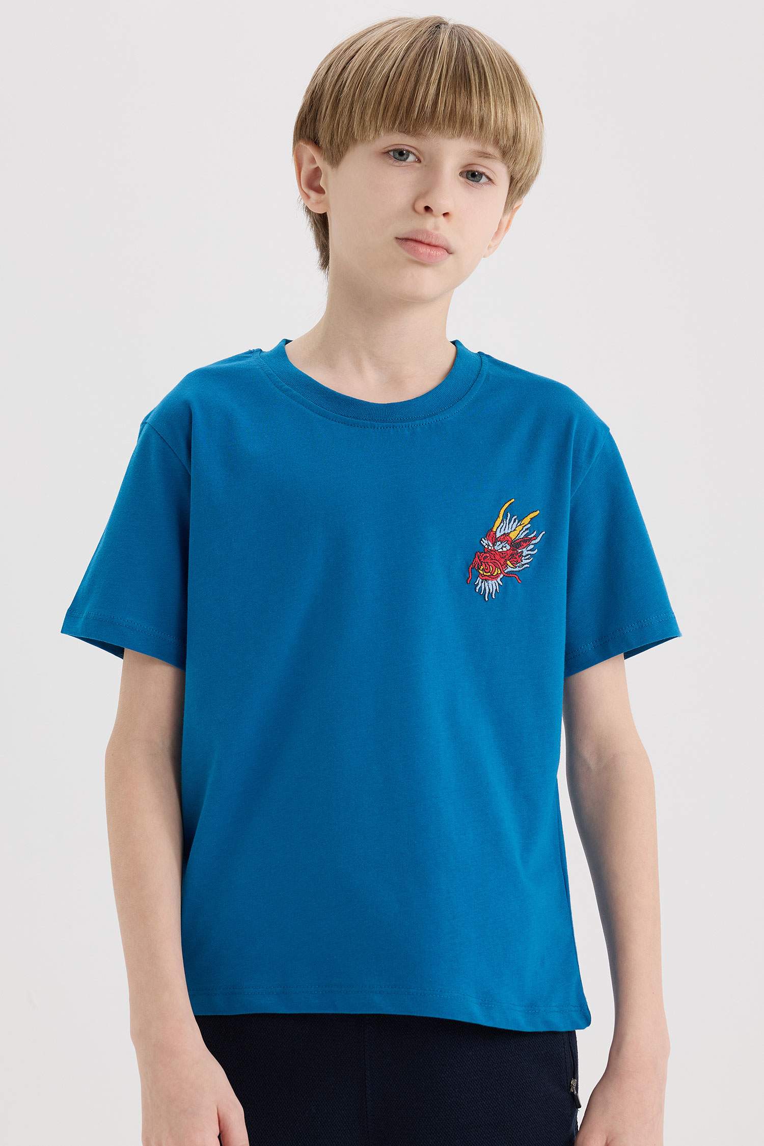 Boy Crew Neck Embroidered Short Sleeve T-Shirt