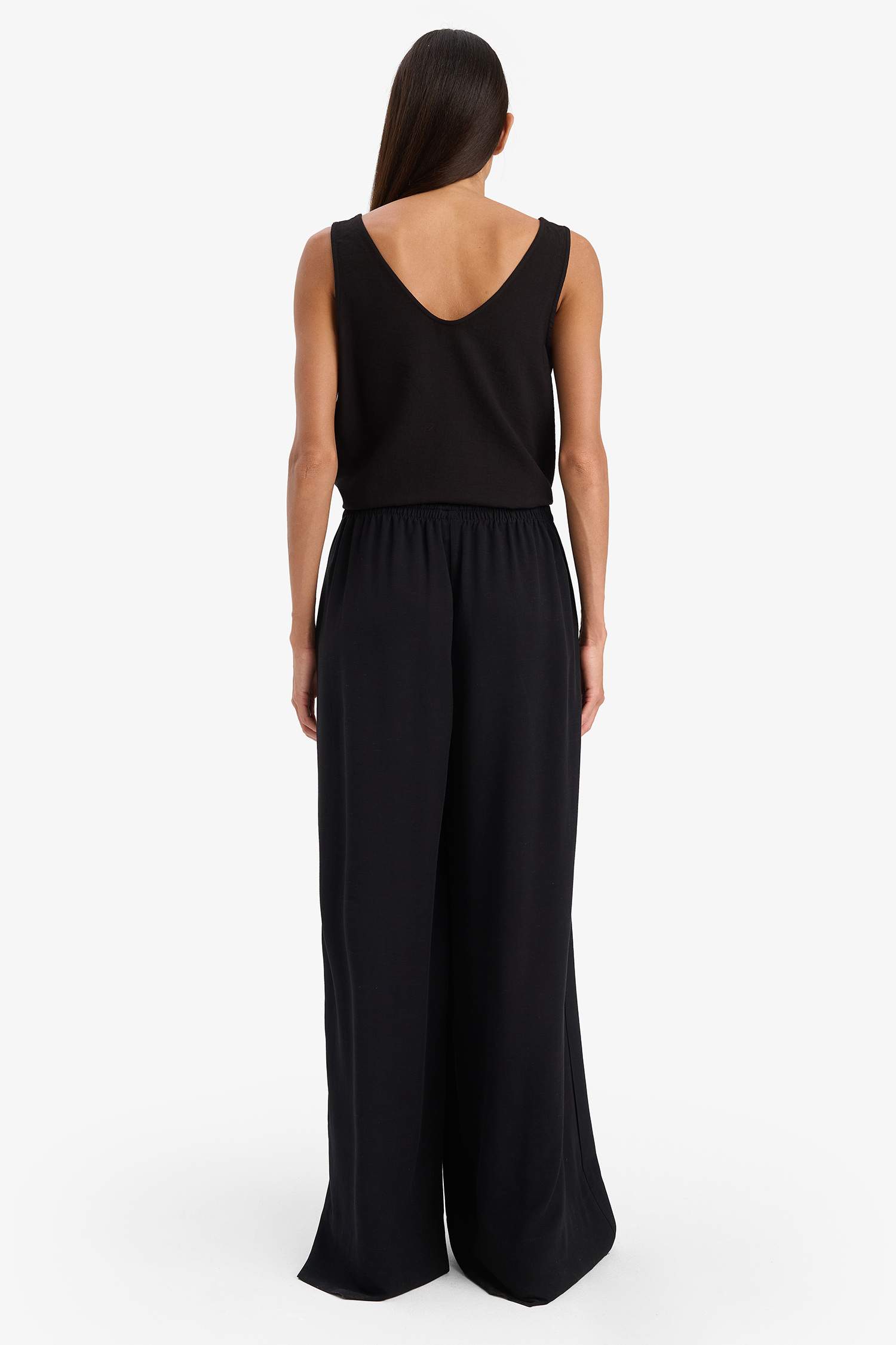 Wide Leg High Waist Linen Blend Fabric Trousers