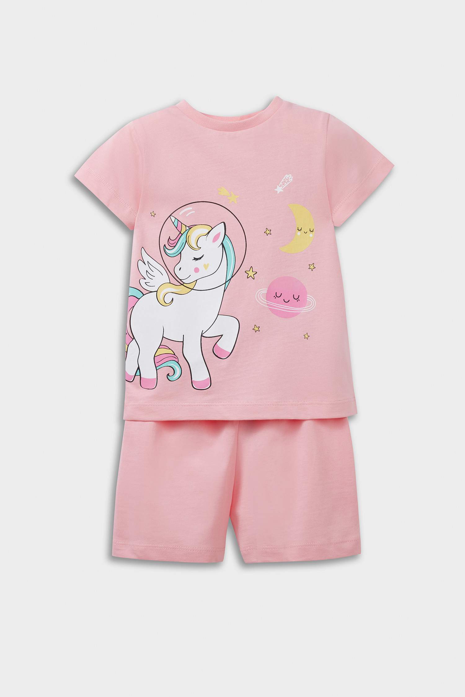 Baby Girl Pajama Set Unicorn Printed Short Sleeve Combed Cotton Top and Elastic Waist Shorts