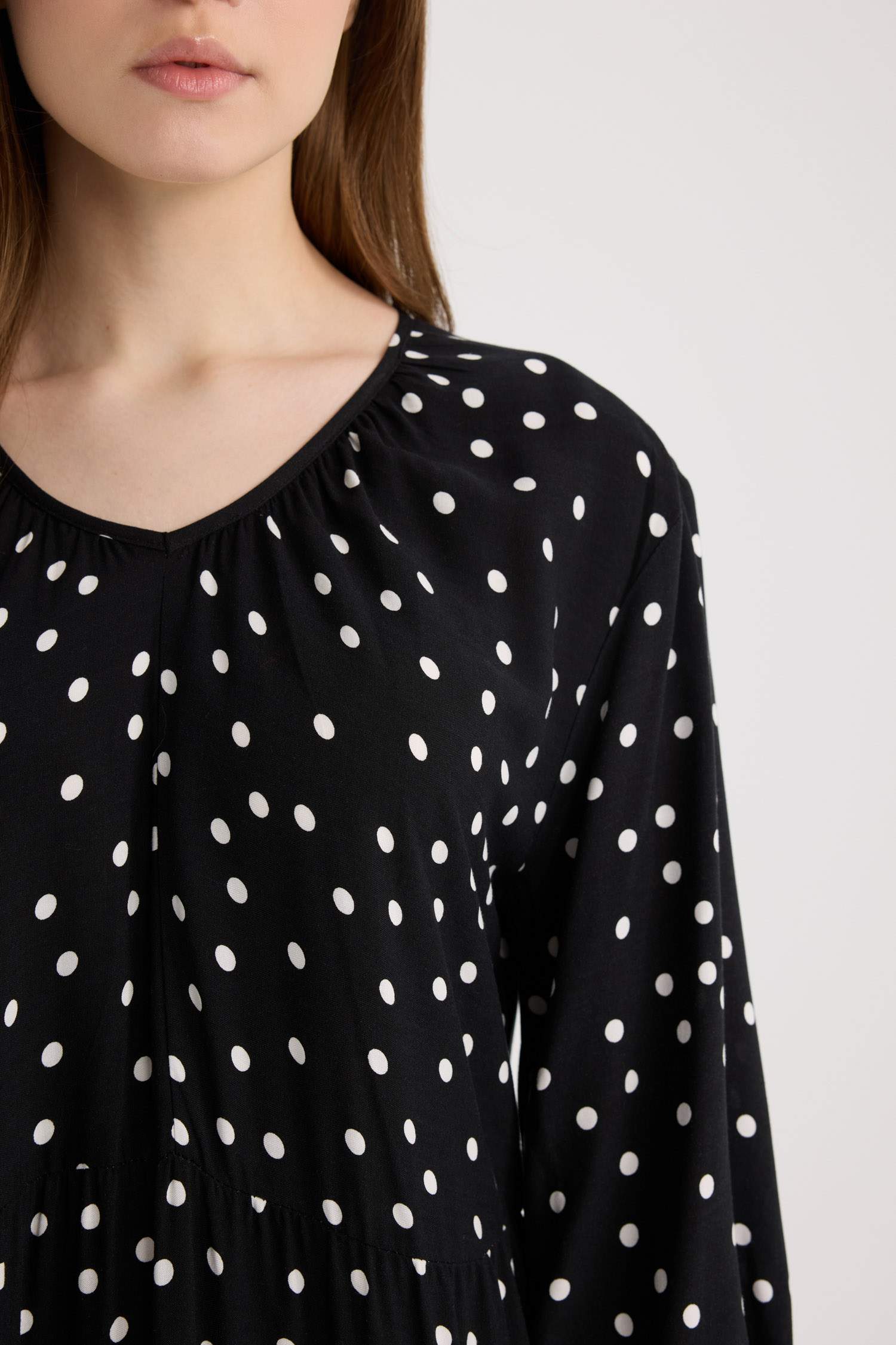 Regular Fit Patterned V Neck Long Sleeve Maxi Dress