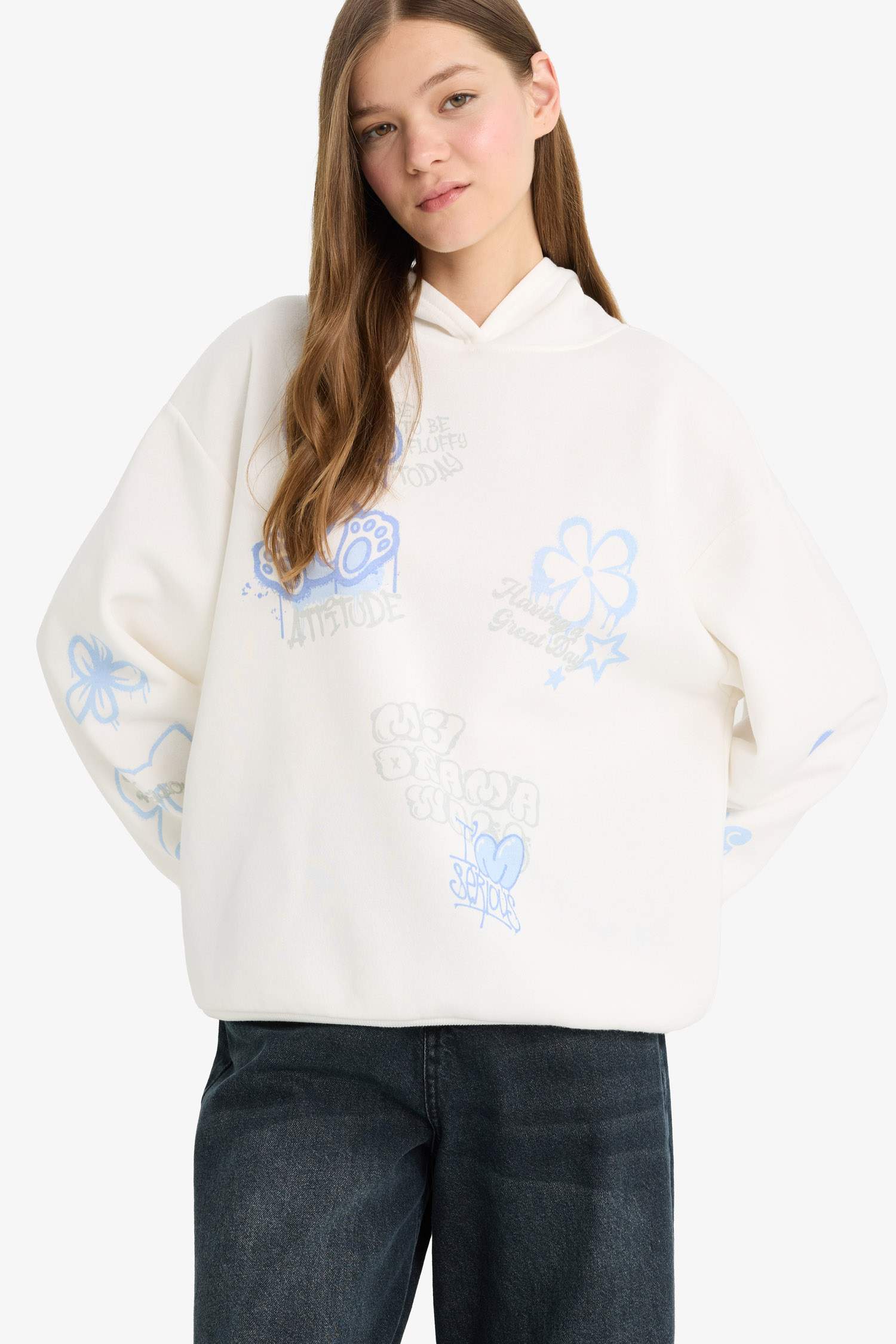 Cool Oversize sweatshirt with a wide fit, hood, print and thick fabric