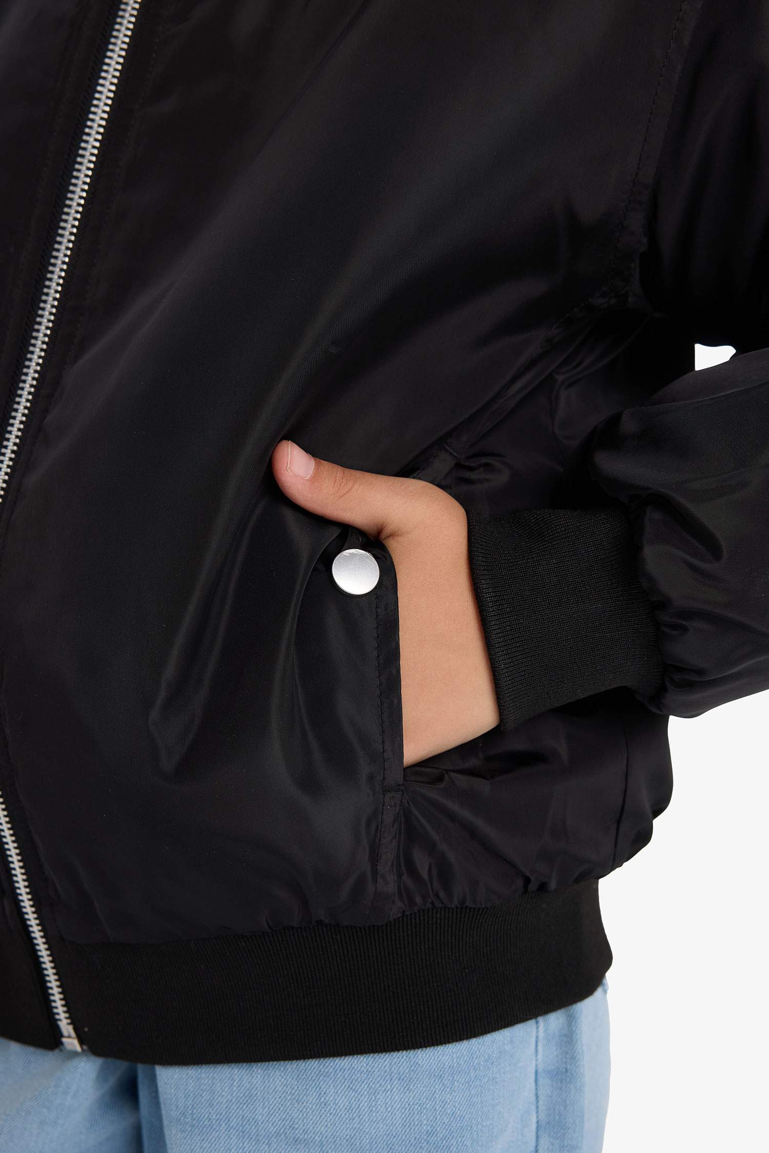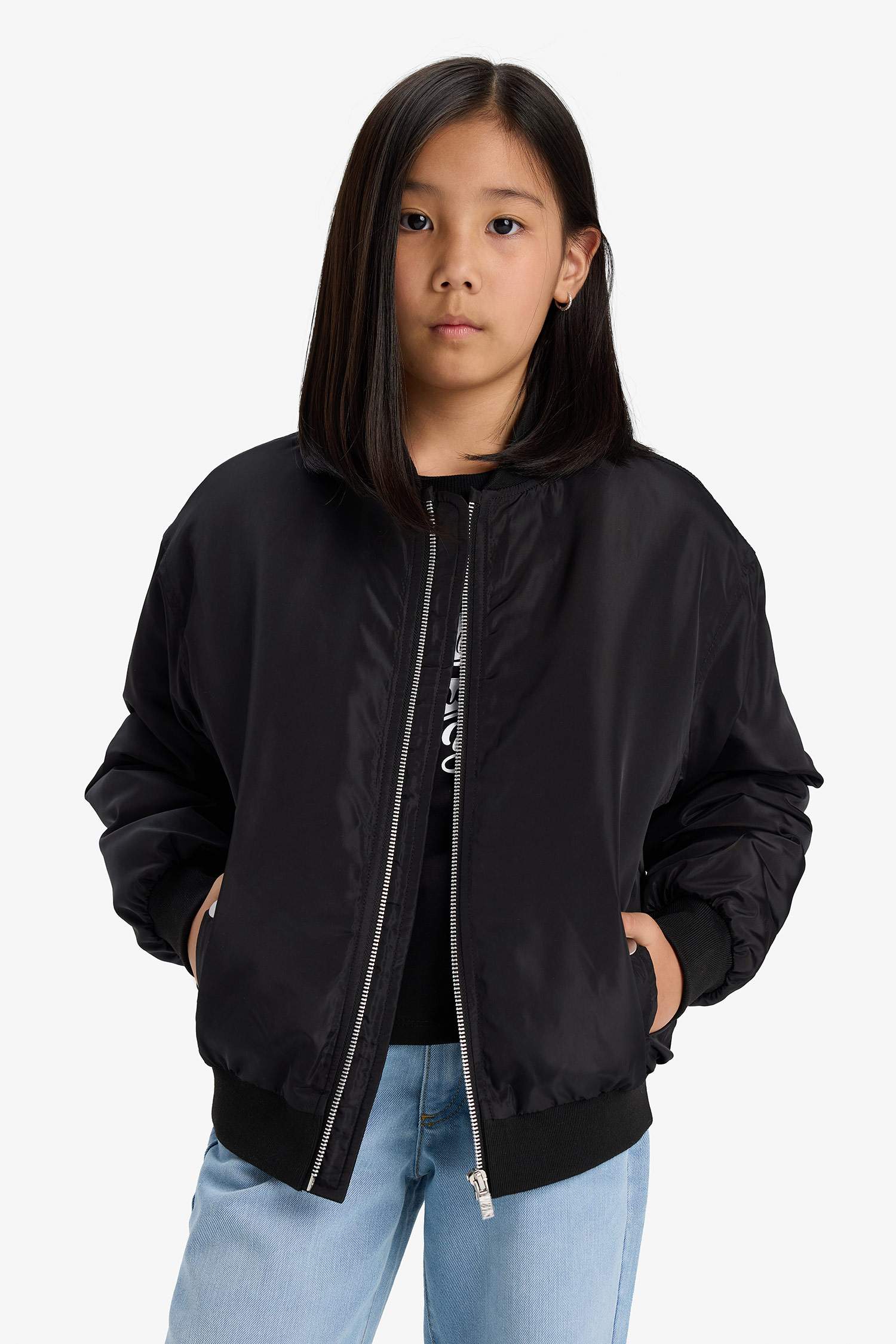 Girls Waterproof College Collar Zippered Bomber Jacket