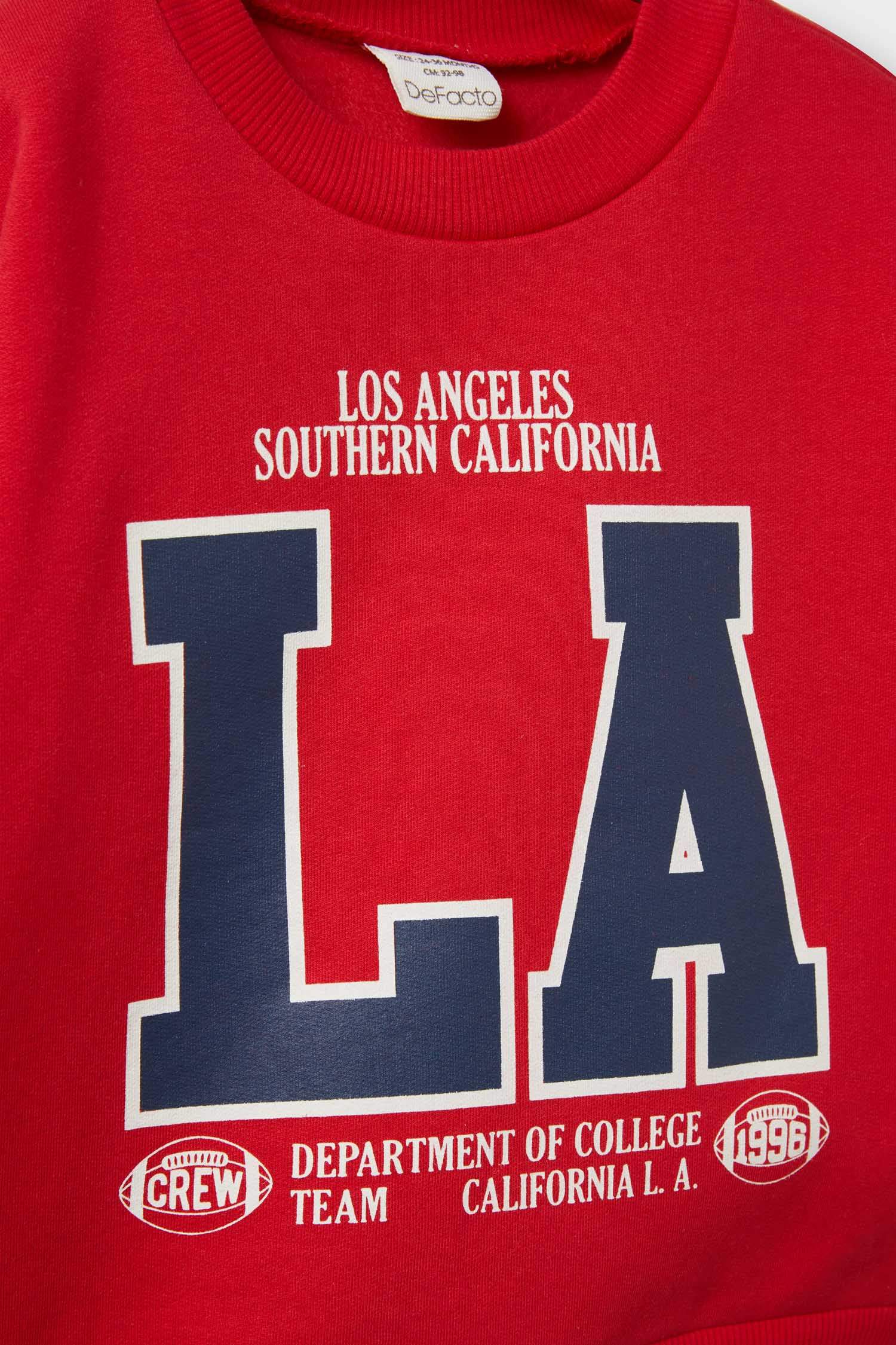 Baby Boy Crew Neck Printed Sweatshirt with Soft Furry Inside