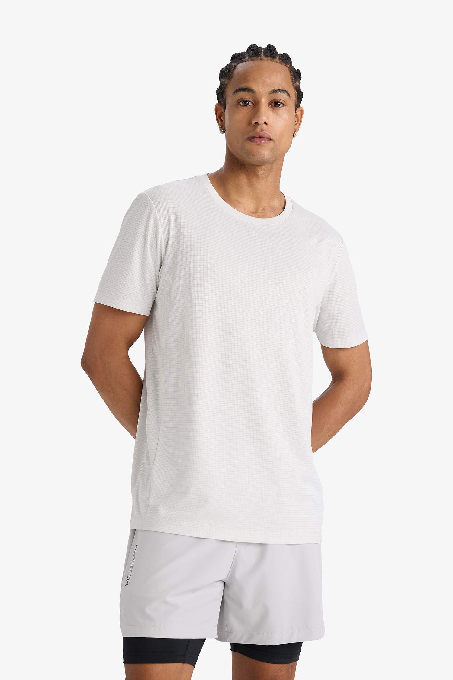 DeFactoFit Slim Fit Slim Cut Crew Neck Quick Drying Breathable Flexible Fabric Printed Sports Short Sleeve T-Shirt