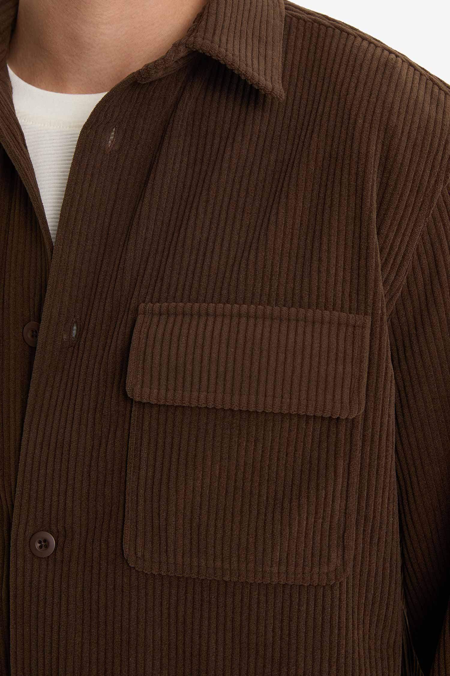 Regular Fit Polo Collar Velvet Long Sleeve Shirt