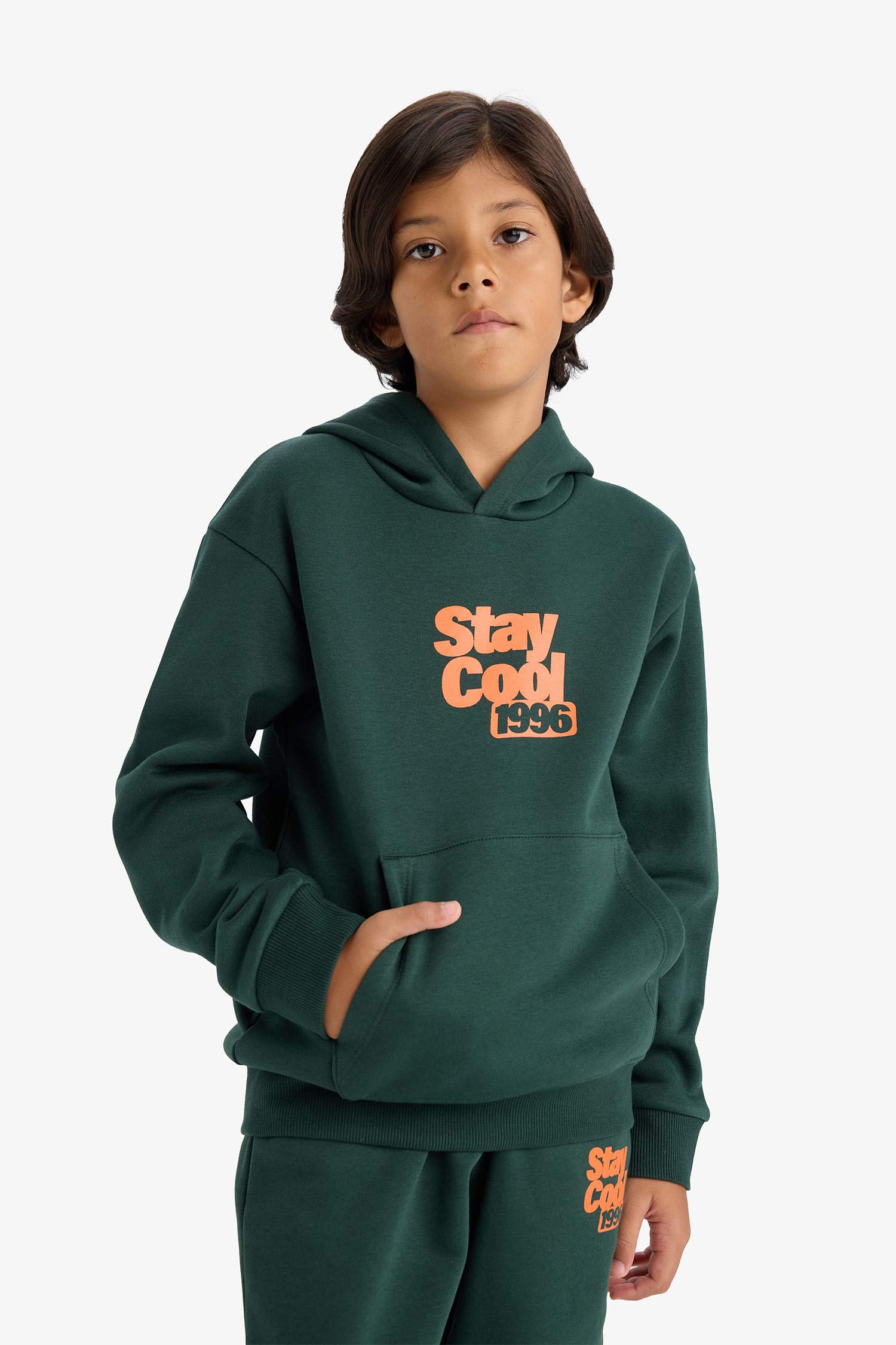 Boys Hooded Printed Sweatshirt with Soft Fur Inside