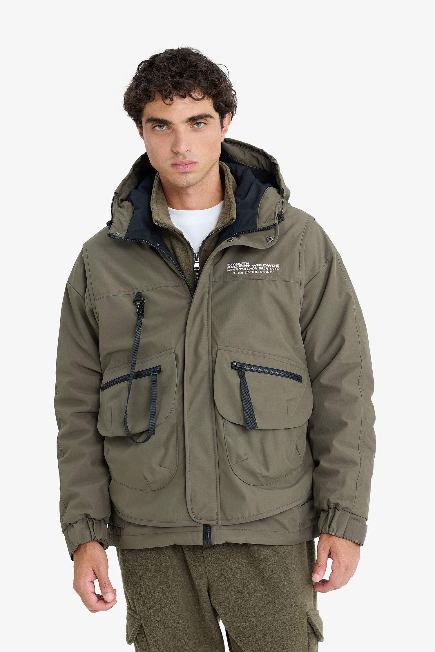 Water Repellent Regular Fit Hooded Print Detailed Zipper Detailed Inner Pocket Coat