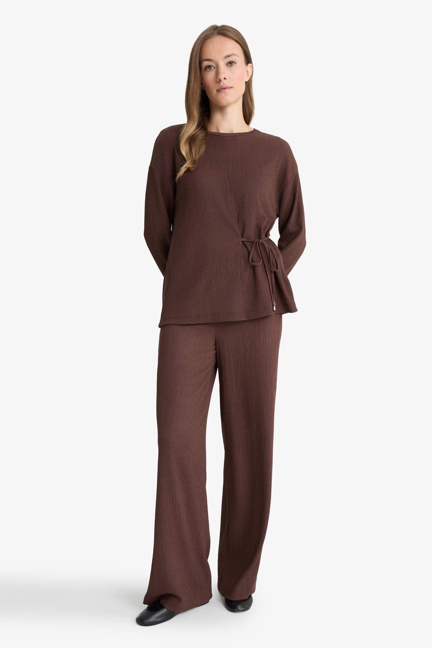 Regular Fit Crew Neck Wrap Long Sleeve T-Shirt