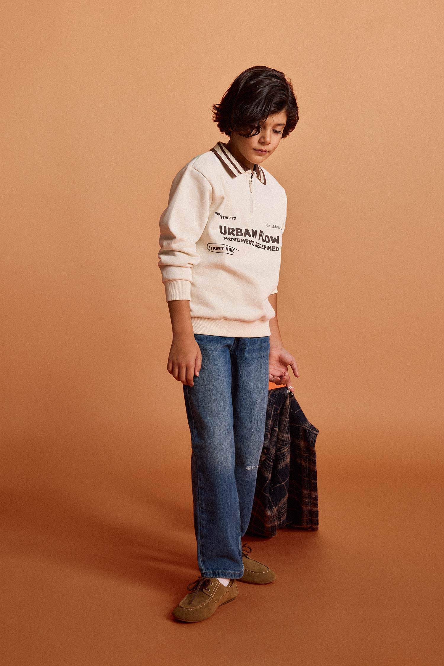 Boys Loose Fit Ripped Detailed Straight Leg Jean Trousers