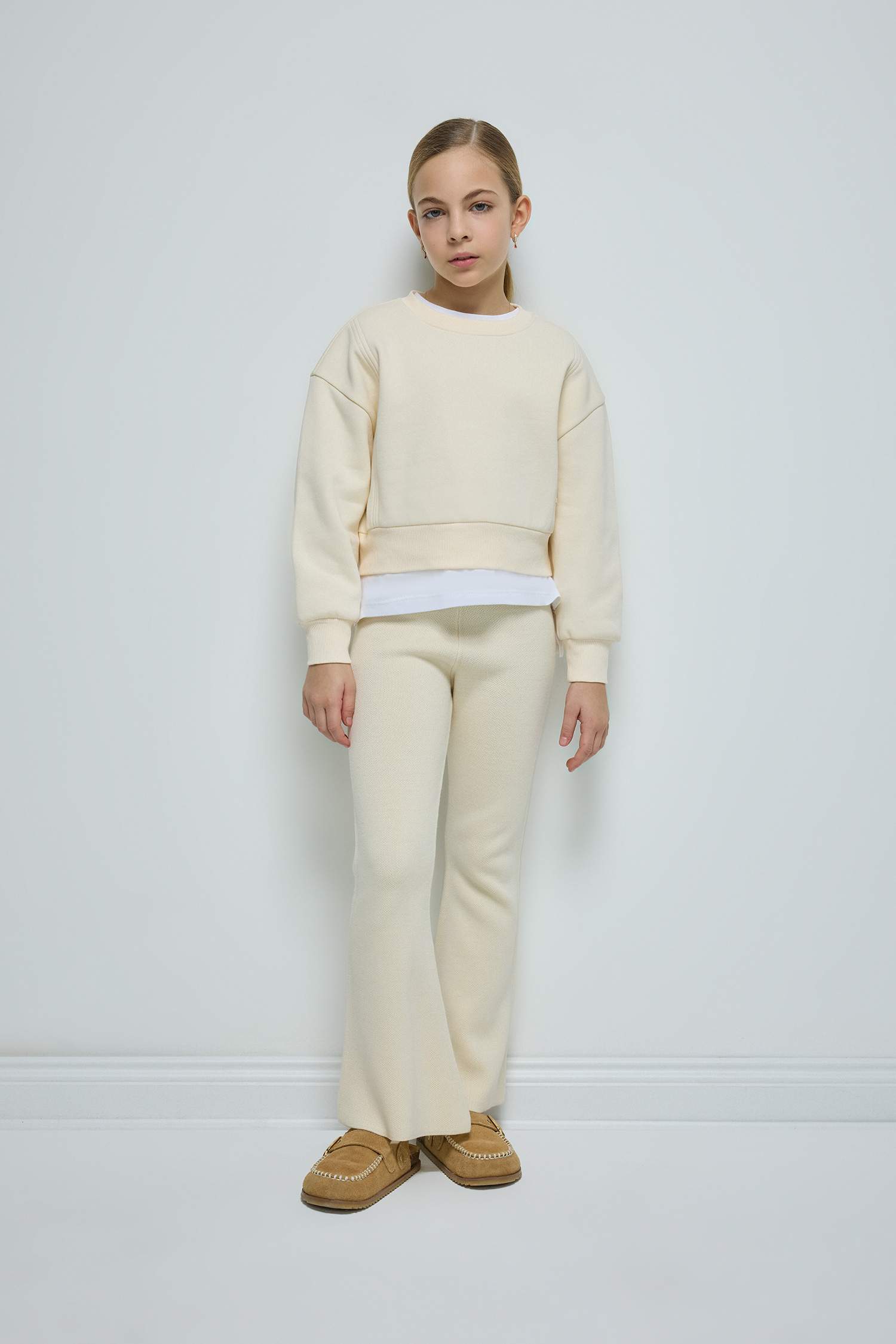 Girls Relax Fit Crew Neck Basic Plain Sweatshirt with Soft Fleece Lining