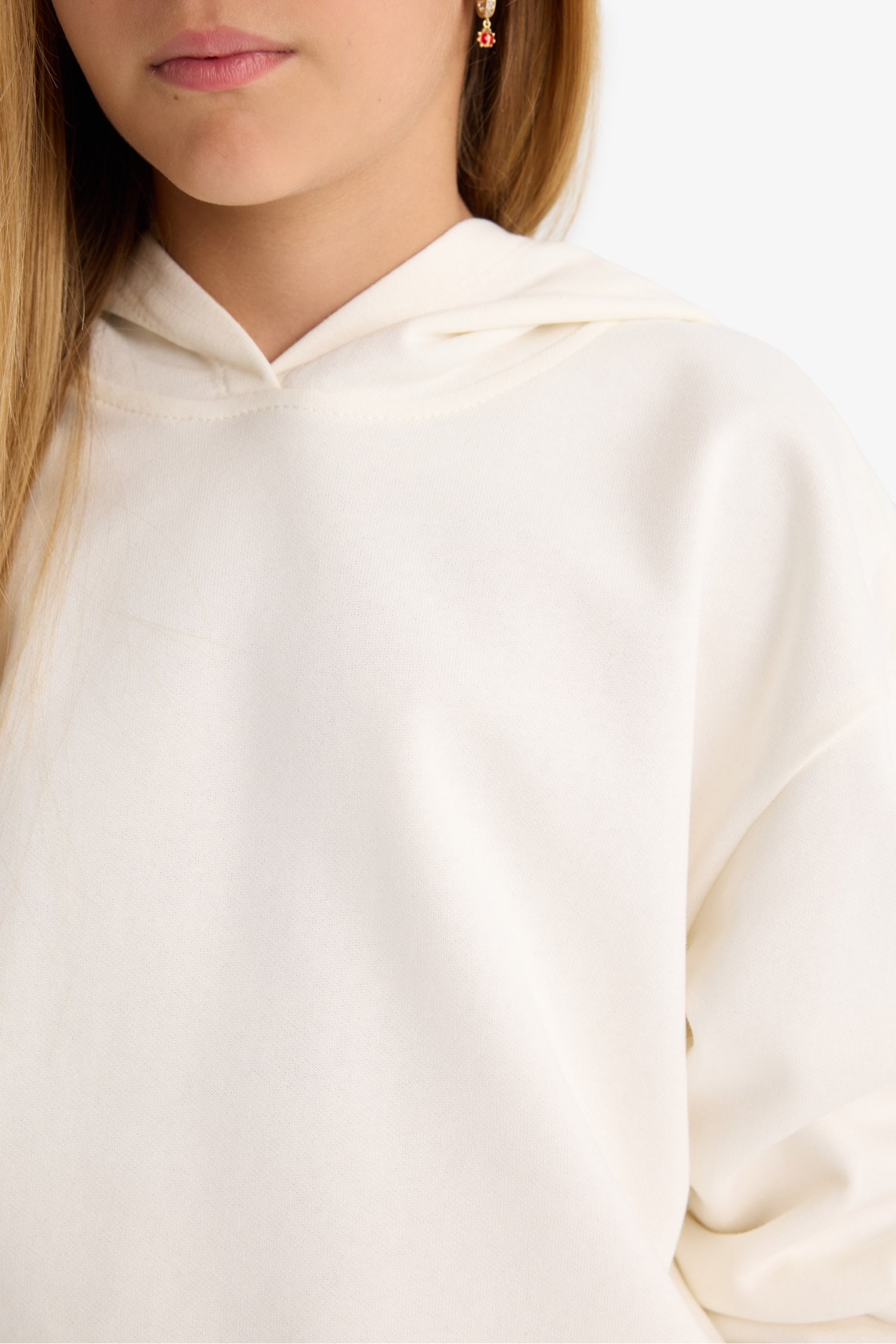 Girls Relax Fit Hooded Basic Plain Sweatshirt