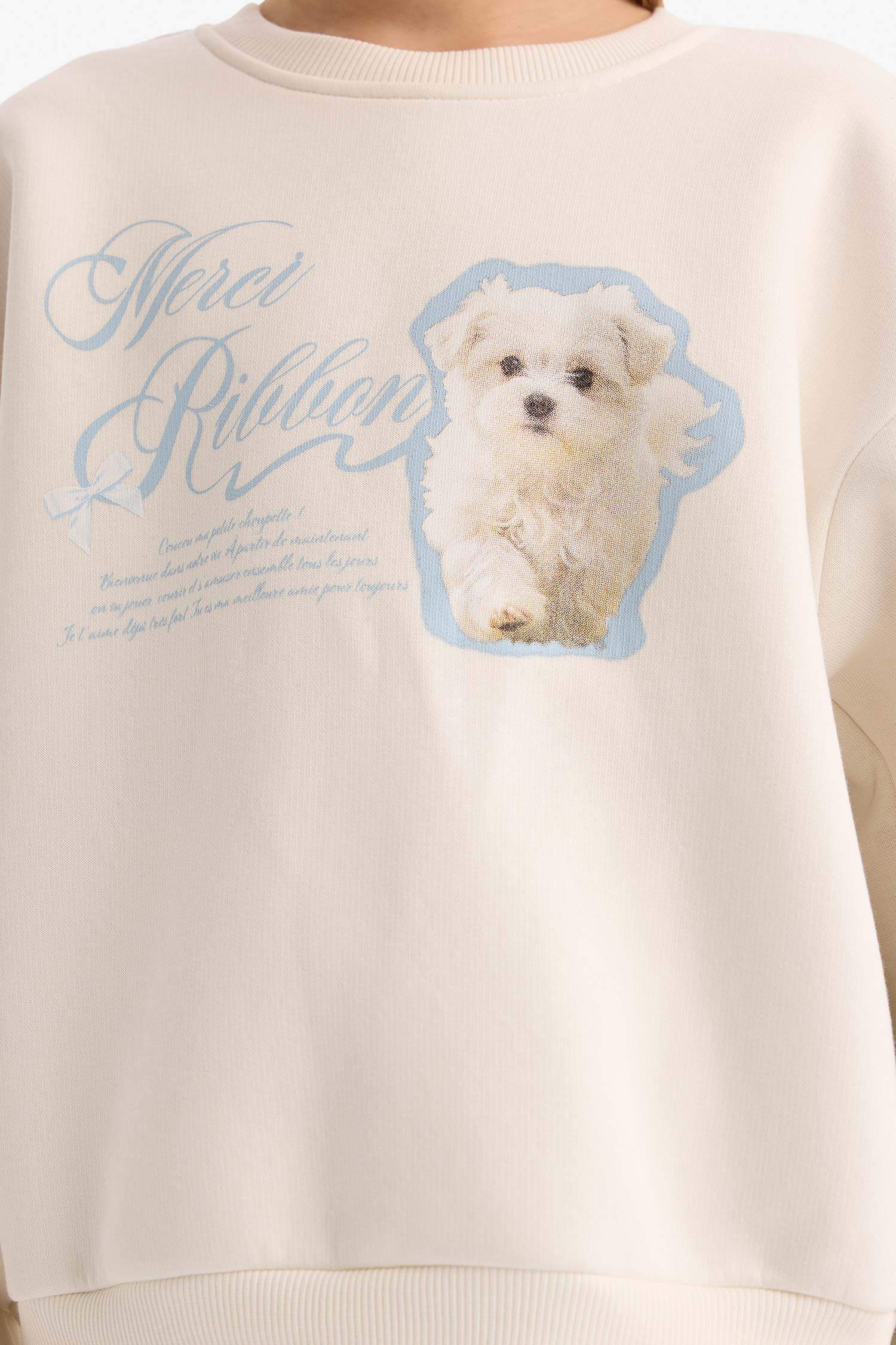 Girls Two-Piece Set: Printed Sweatshirt and Sweatpants