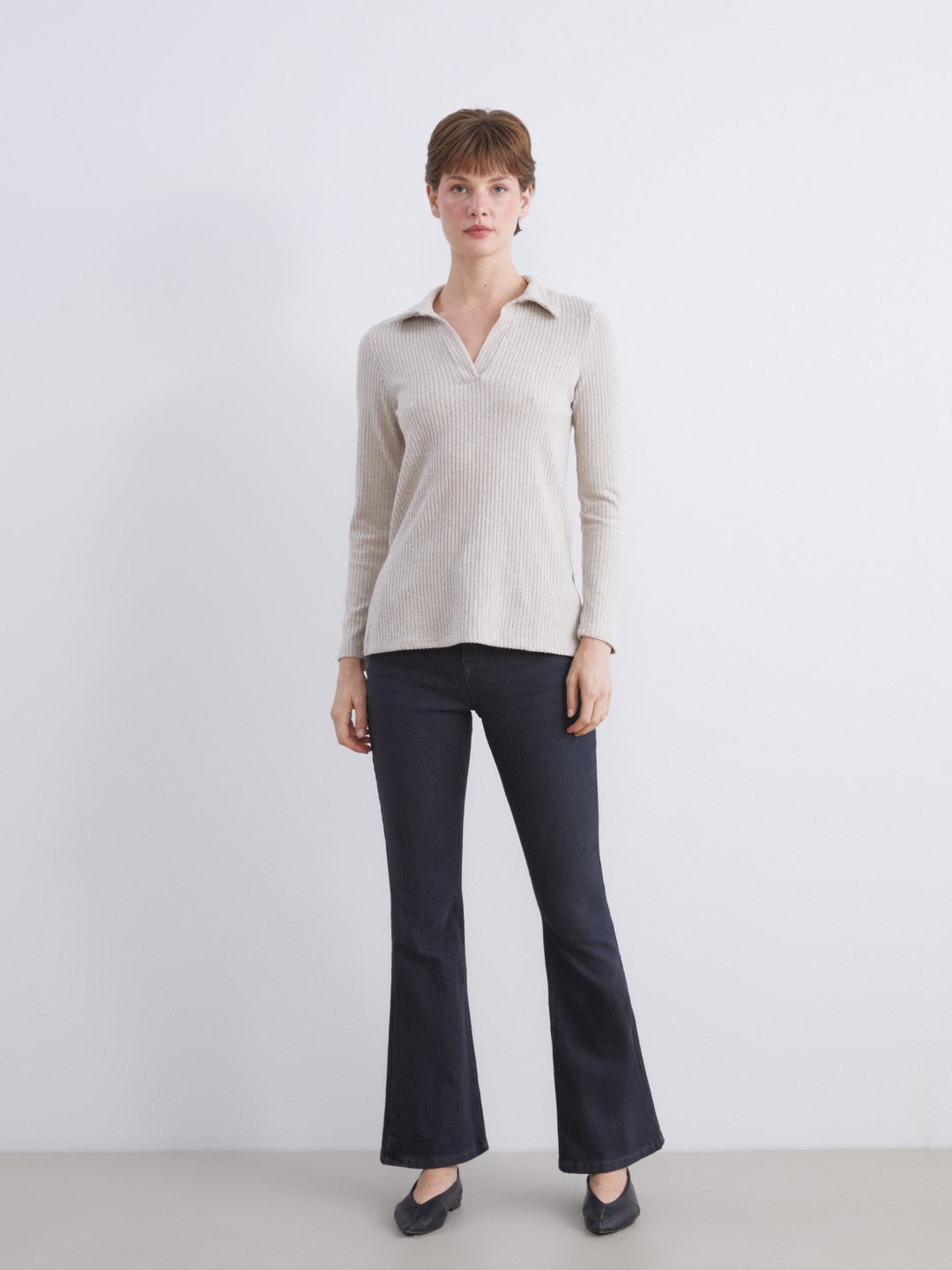 LCW Comfort Polo Neck Ribbed Women T-Shirt