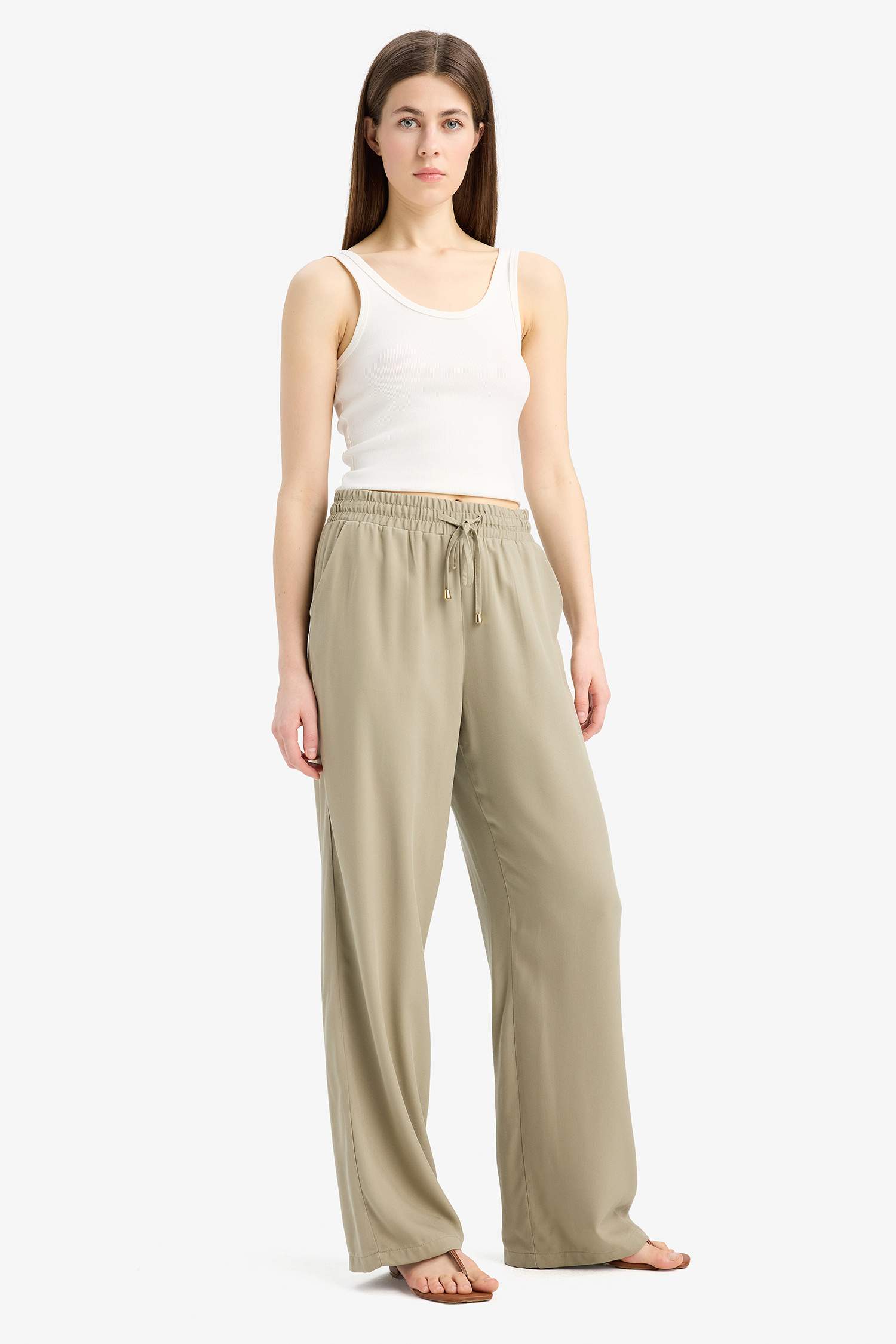 Viscose wide leg trousers with high waist Florida with pockets