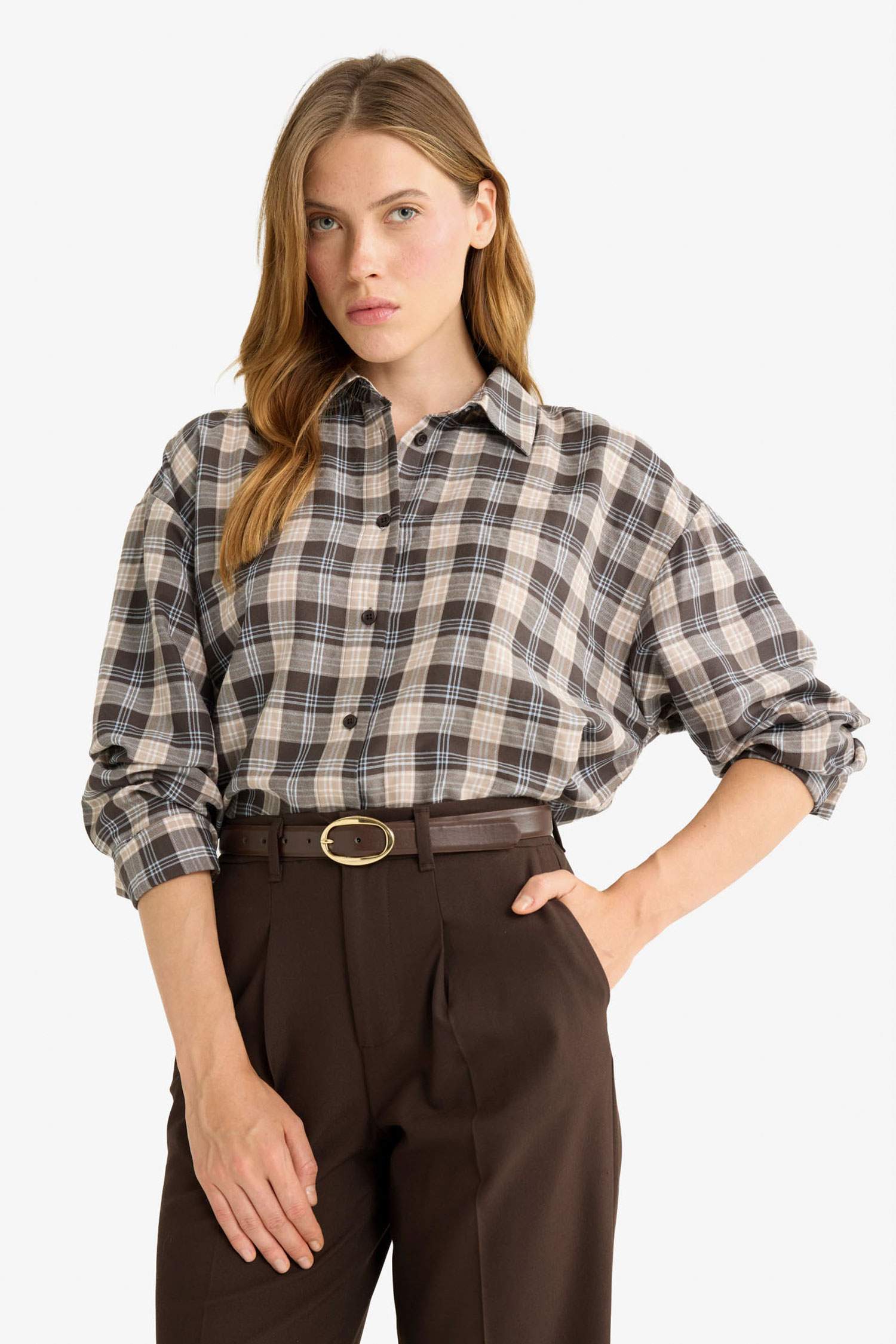 Oversize Loose Fit Plaid Flannel Long-Sleeve Shirt