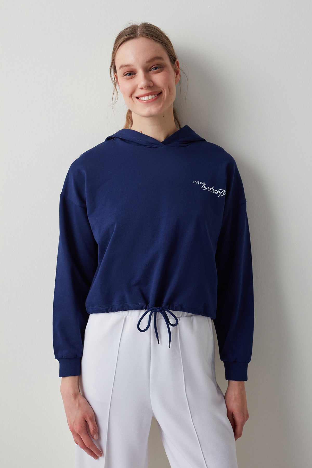 A sporty and stylish look with motto details. Adjustable waist, hooded, comfortable fit. Material