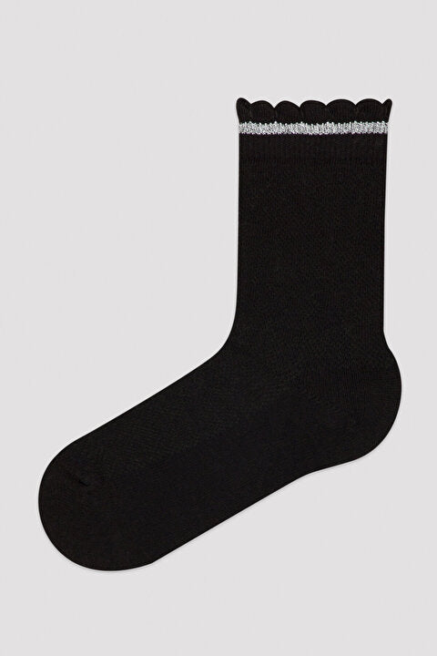 Glitter Basic 3-Piece Socket Socks, which adds sparkle and elegance to girls' combinations with the glittery stripe detail on the ankle part and ensures comfort and convenience throughout the day. Material