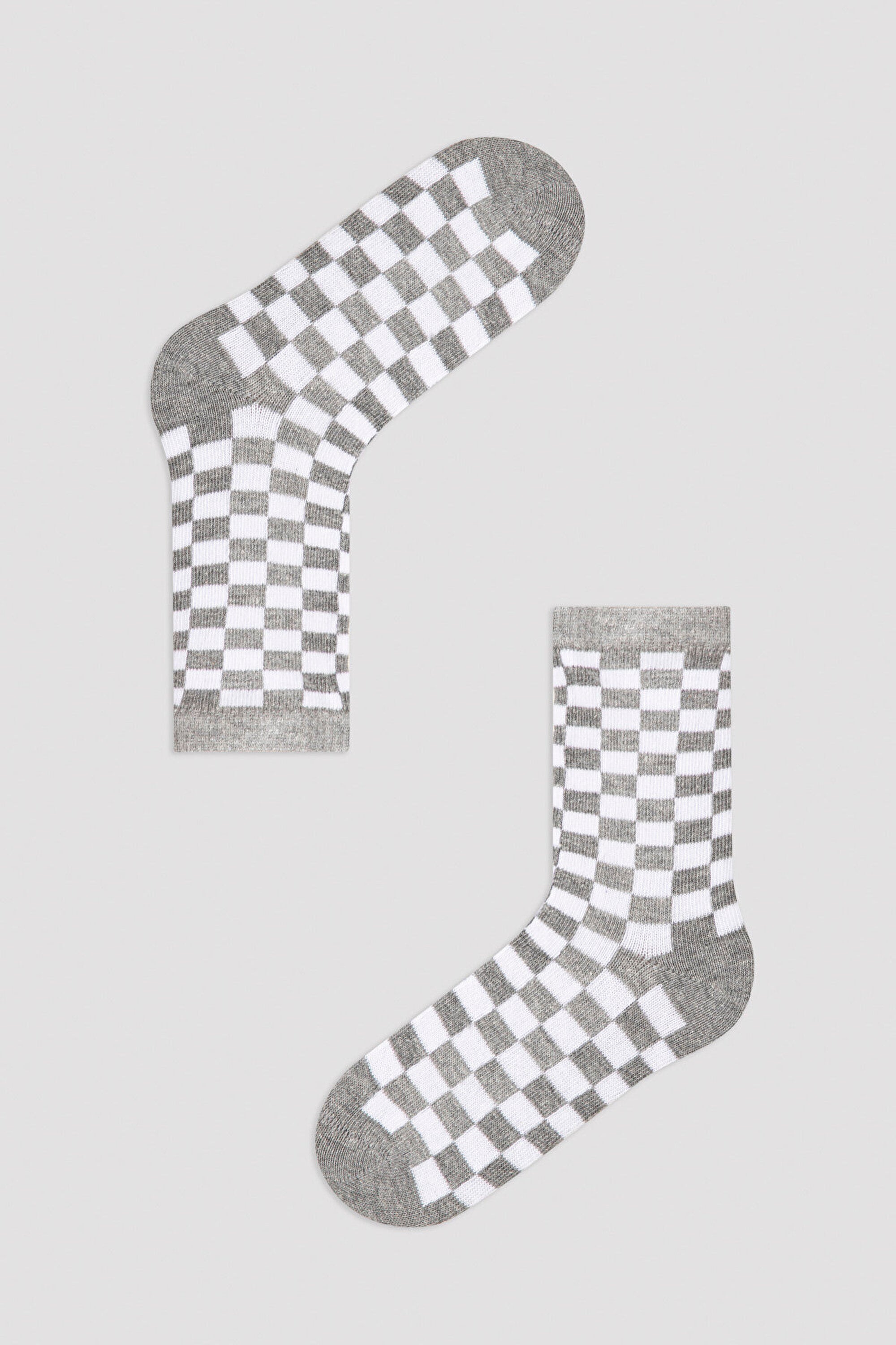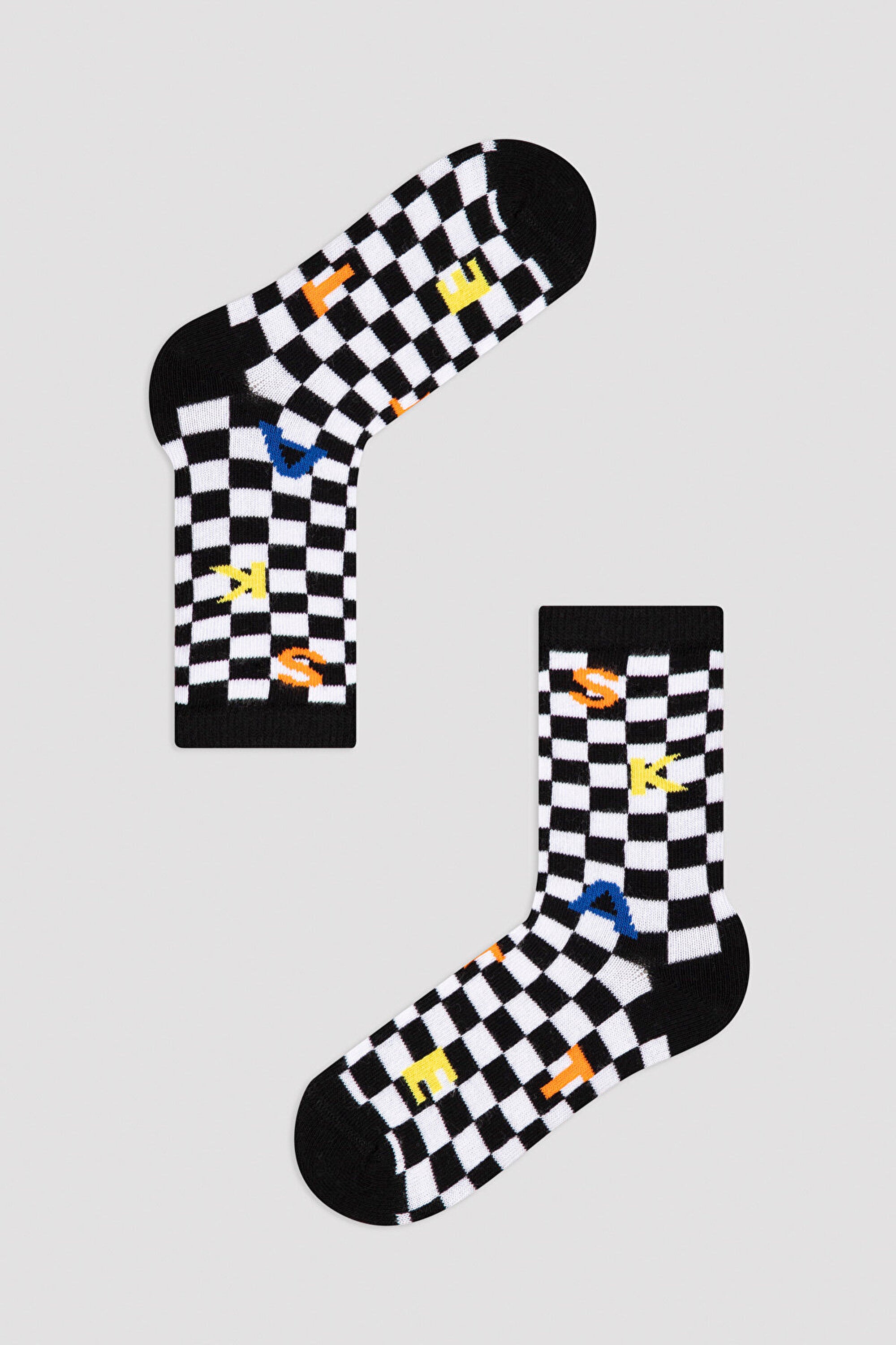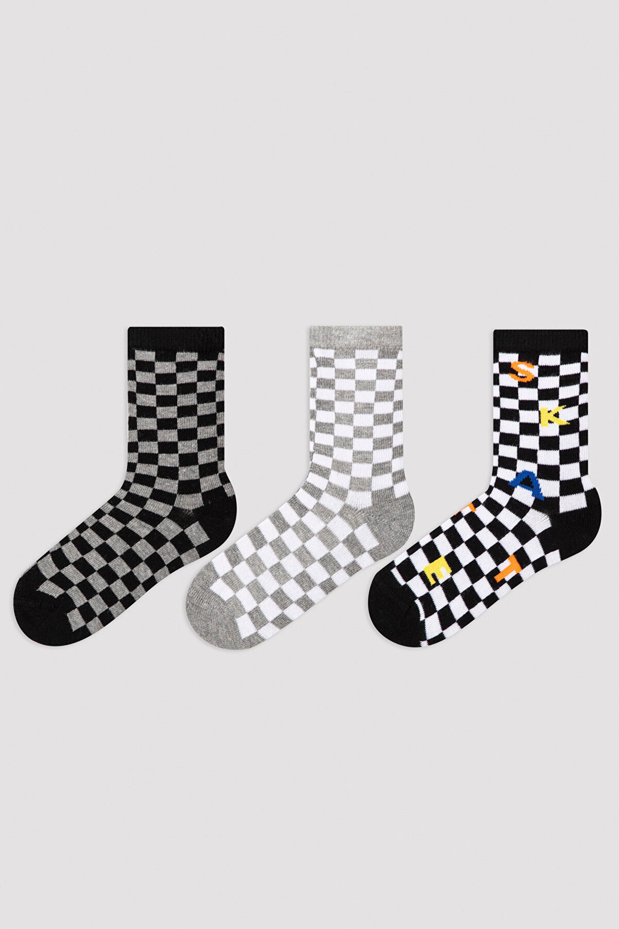 Skater Checked 3-Piece Socks in beige, black and gray colors, with gingham patterns on them, allowing boys to add a different touch to their daily wear style and making them feel comfortable and comfortable. Material