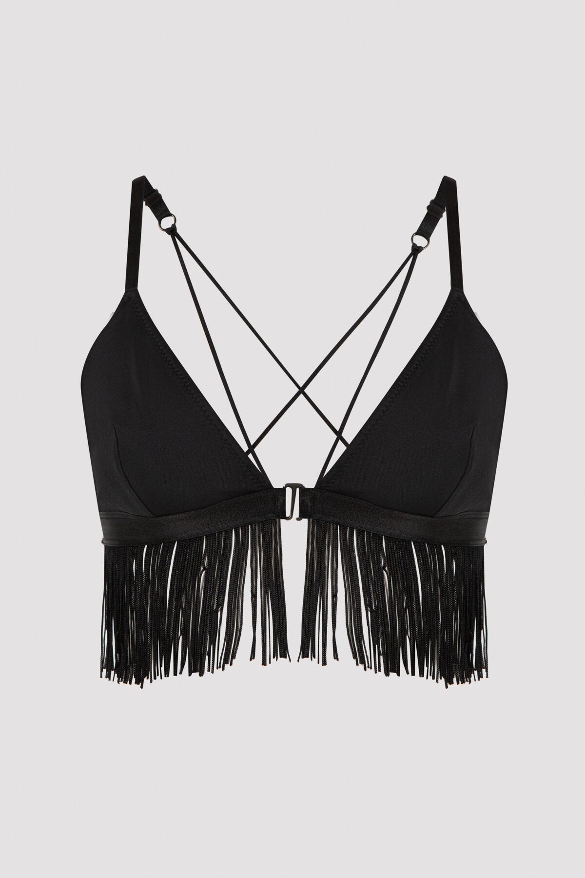 Are you ready to change your underwear habits with the Triangle Tassel Bra? The unique details of the Triangle Tassel Bra, which awaits to accompany your ambitious style with its breathtaking design, challenge the ordinary. While it gives you a natural look with its non-wired and non-padded form, it allows you to feel more comfortable at any moment by offering perfect comfort all day long with its soft texture. The shiny elastic band of the Triangle Tassel Bra, which embraces your back and meets with a clip in the middle of your cups, adds a striking detail to your style. The stylish tassels falling from under your breasts to your body will amaze you with their touches that caress your soul. The thin strips that extend from your adjustable straps to the band on your back in a diagonal form crown your style with a dazzling back cleavage. You can own a cool ensemble by wearing the Triangle Tassel Bra, which makes you look much more attractive than ever, with Triangle Brazilian Panties.