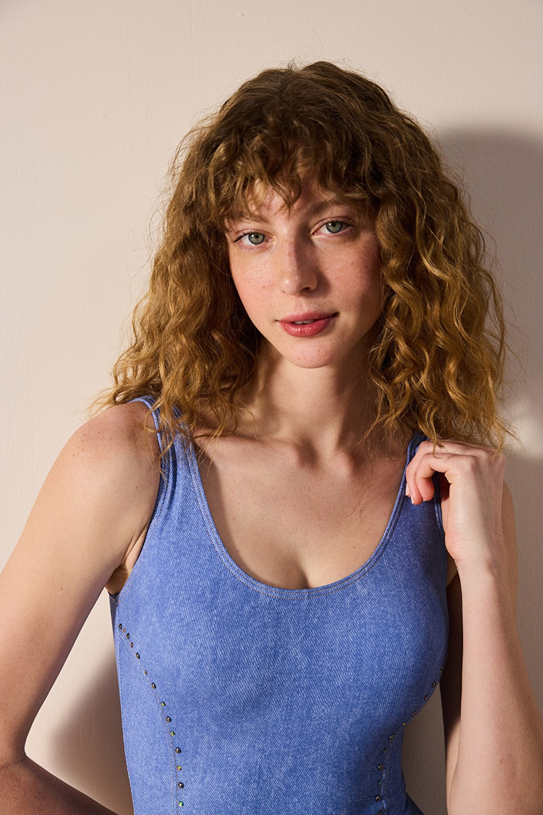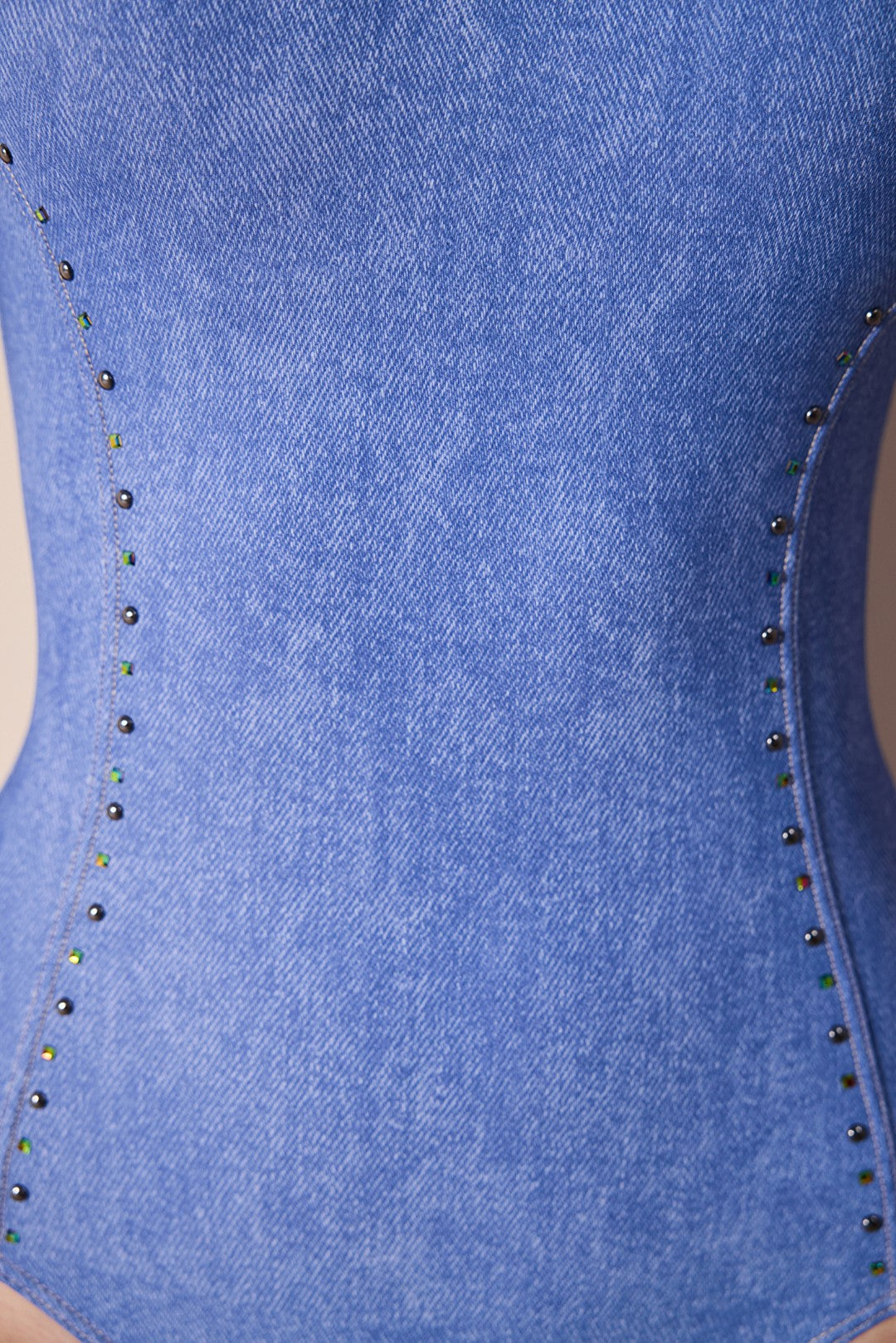 This magnificent Jade Sport Suit swimsuit stands out with its both stylish and functional features. While it captures elegance with its digitally printed denim look, it completes its elegance thanks to studs and stones. This product, which saves water with its environmentally friendly digital printing, offers comfortable use with its underwire-free structure and fixed straps. You're ready for summer with this swimsuit, which offers the opportunity to style it as you wish thanks to its removable pads! Discover the Jade Sport Suit now and take your elegance to the top! The measurement of the model in the image is Size S, Height 180 cm, Chest 82 cm, Waist 60 cm, Hip 89 cm
