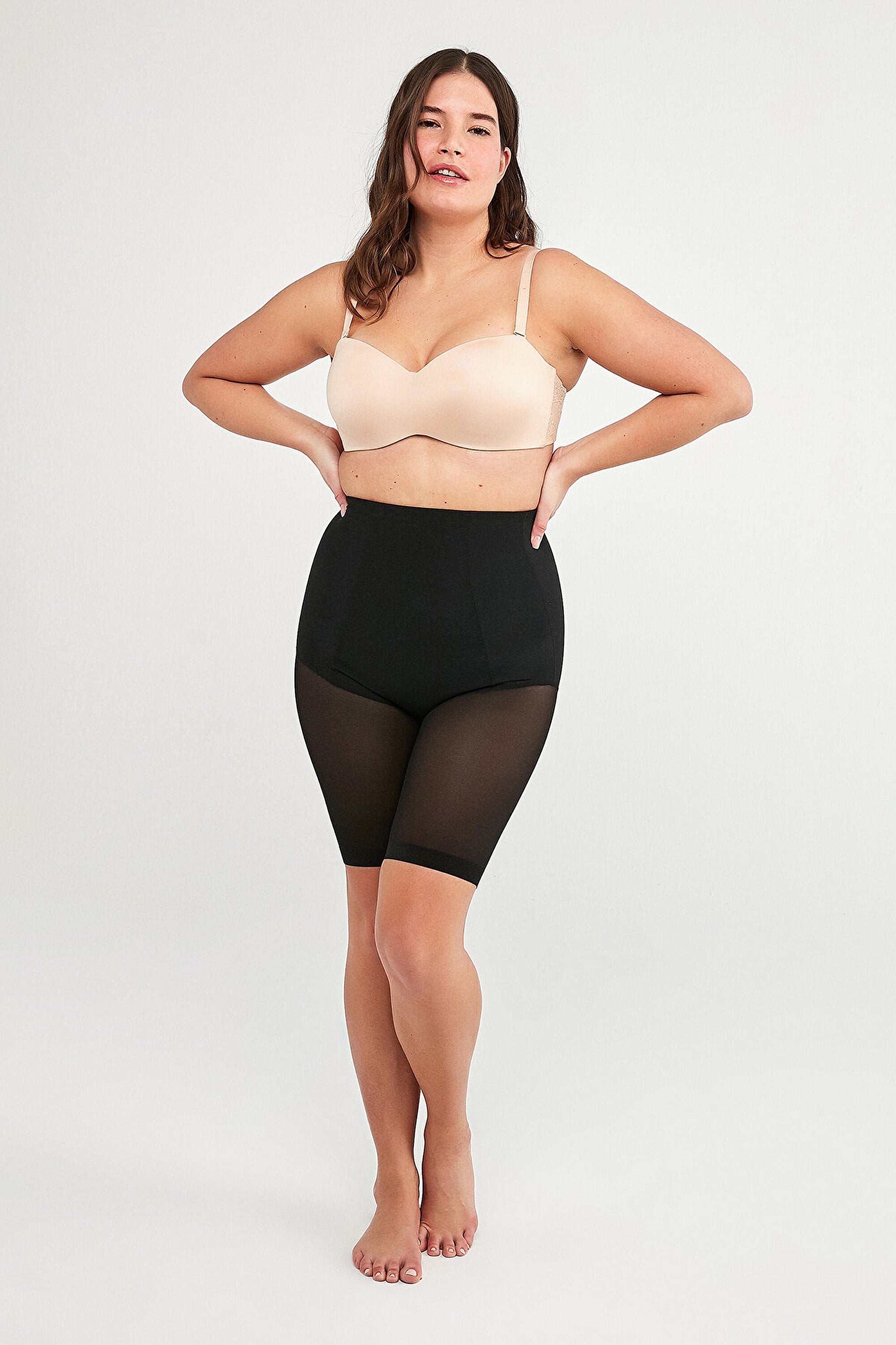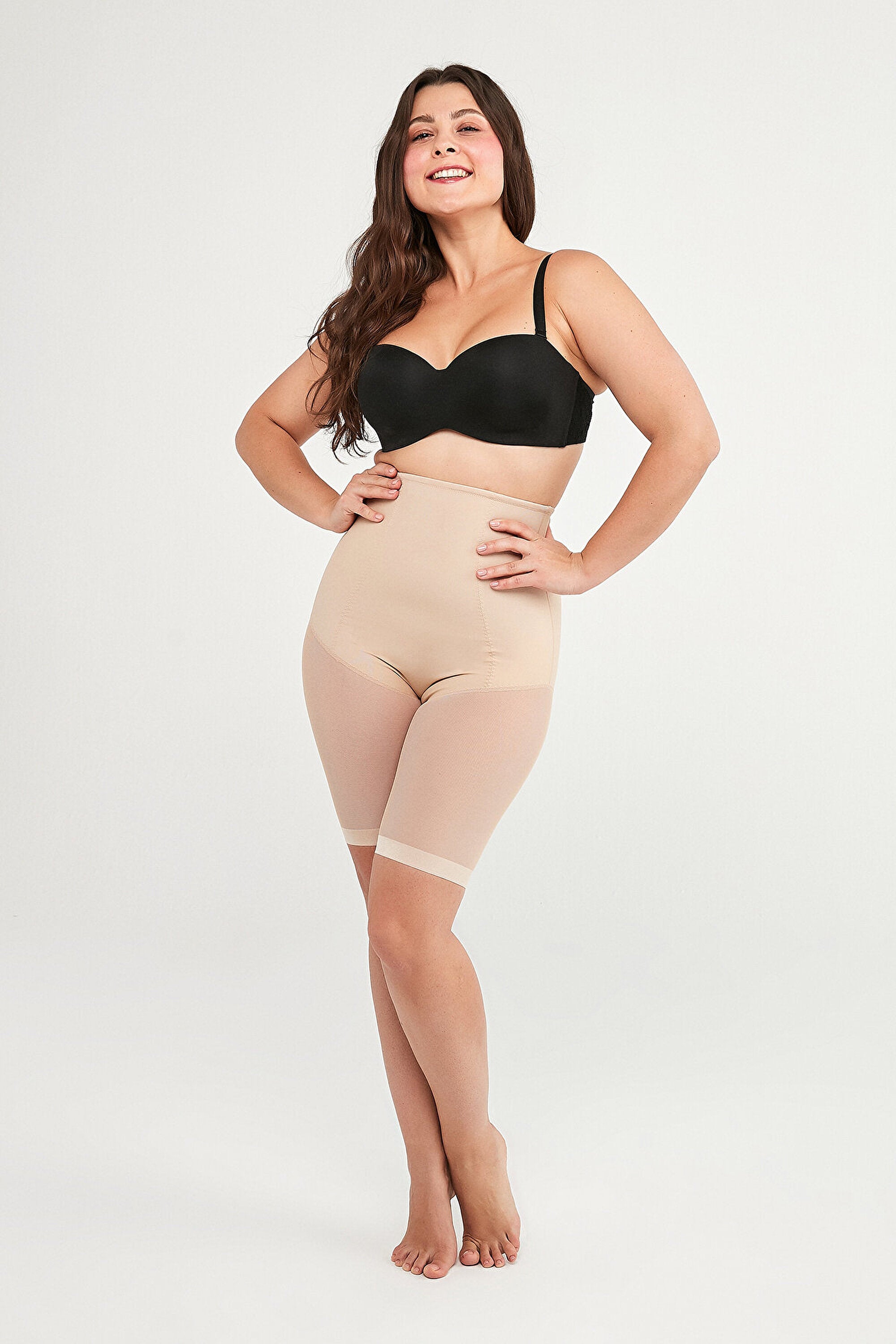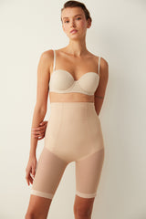 Premium Seamless Push Up Short Corset, which covers the hip and abdominal area with its flexible fabric, provides a high level of tightening, does not show itself with its seamless structure, has a soft texture, gives a more fit appearance by tightening the abdominal area, and lifts the hip slightly up with its push-up feature design. It provides comfortable use in combinations with stylish trousers and dresses for special invitations and organizations.