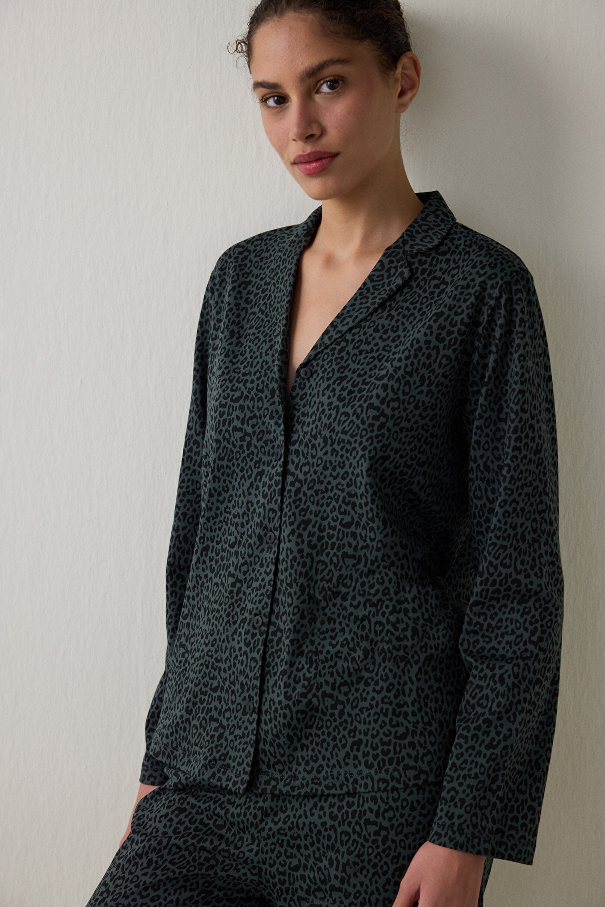 Black Dark Leopard Cotton Shirt Pants Pajama Set