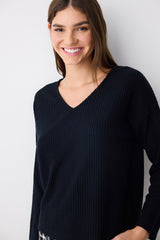 Alia Dark Black Sweatshirt Pajama Top