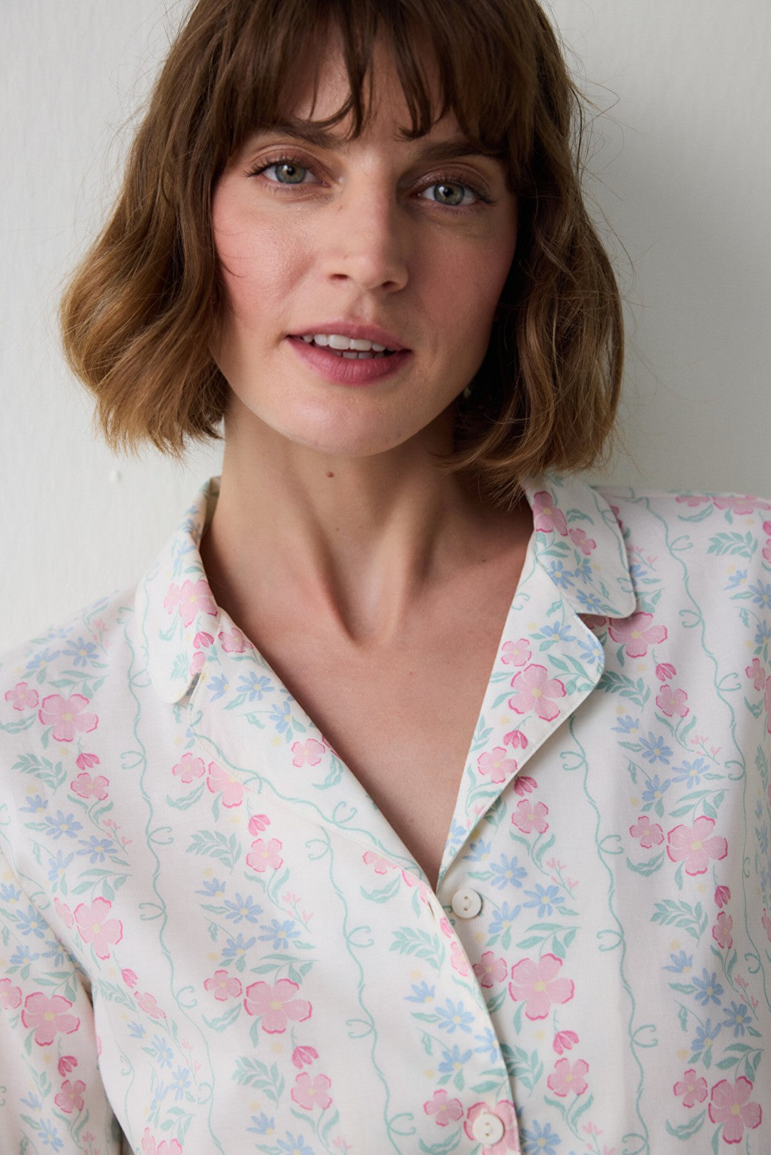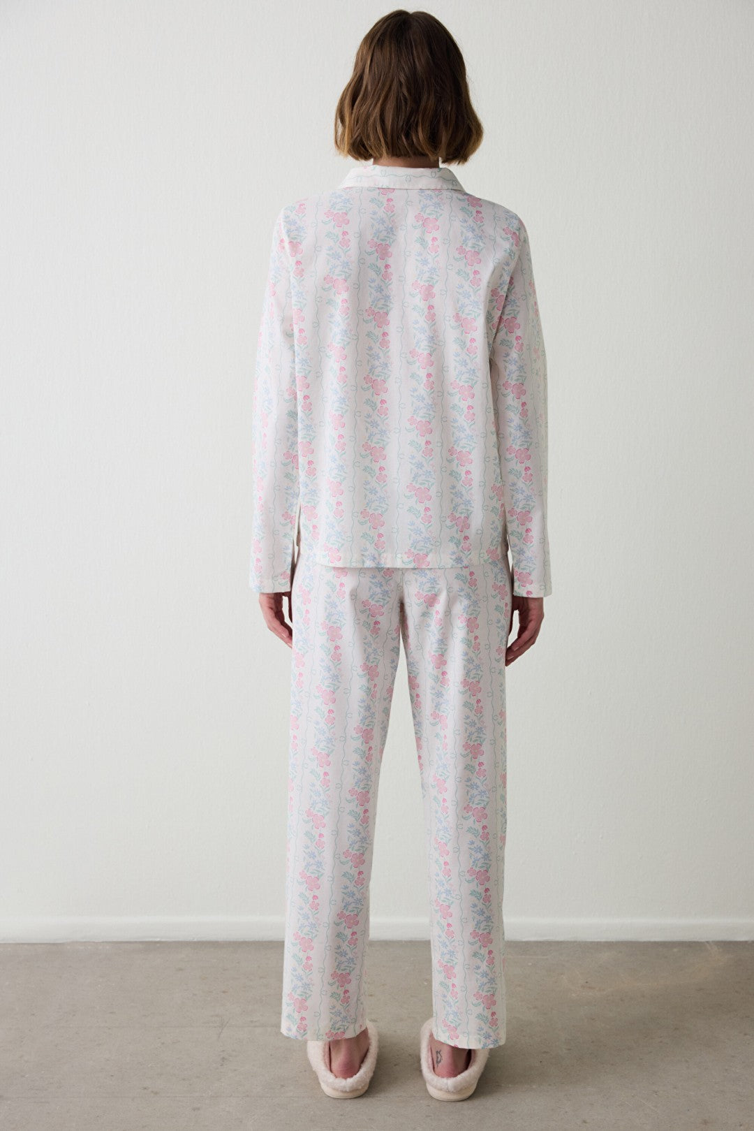 Gardenya Cute Flowers Floral Shirt Collar Long Sleeve Pajama Set