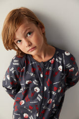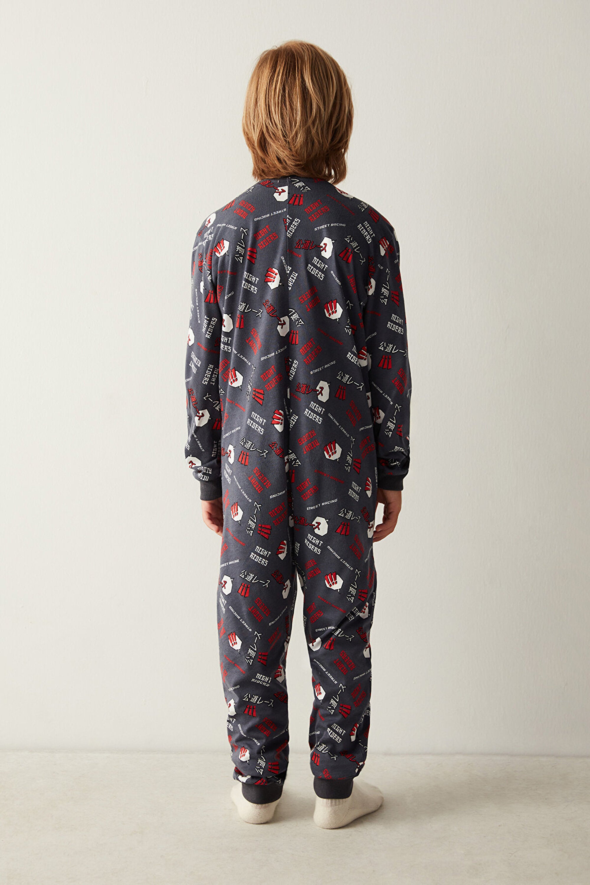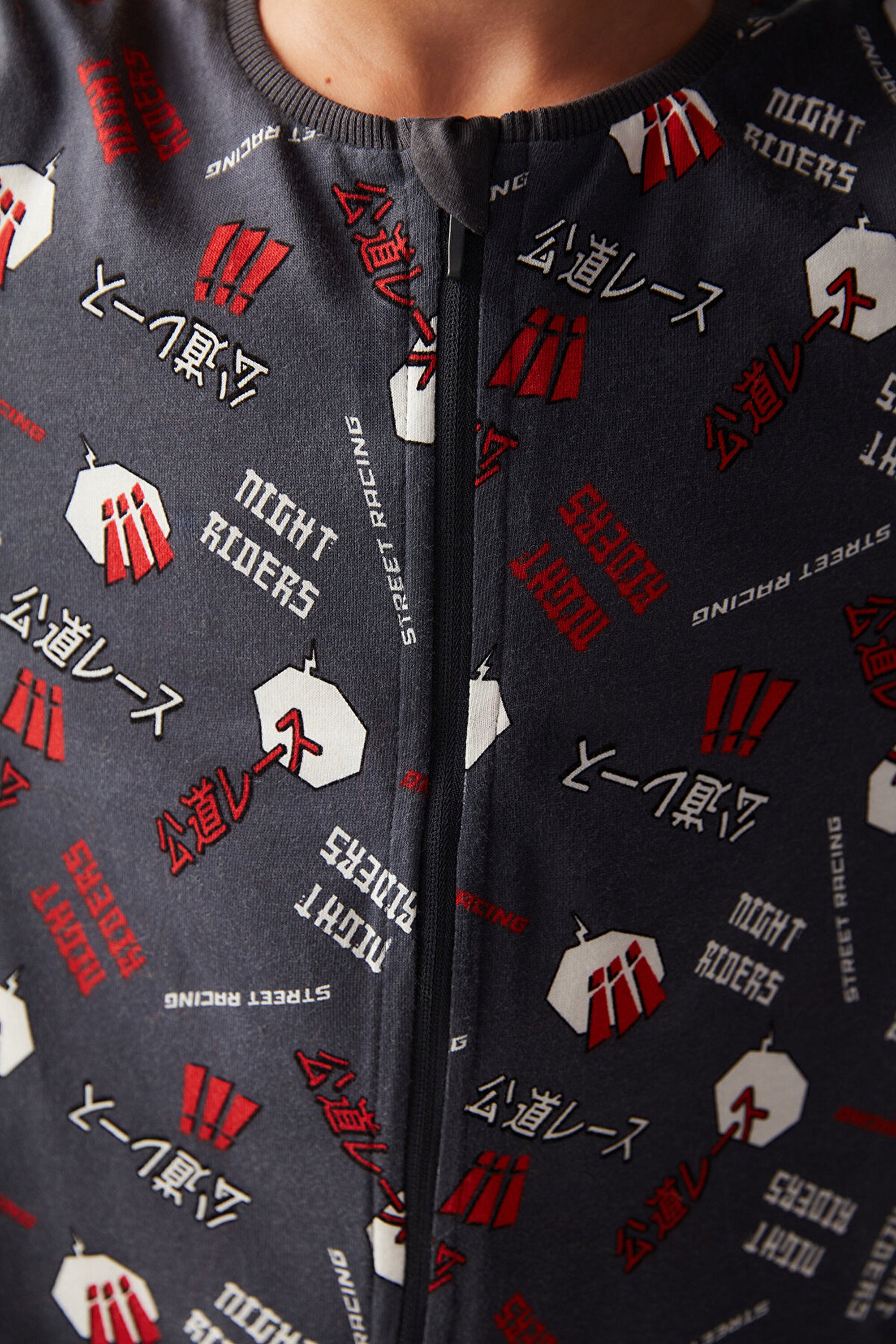 Anime Print Ls Onesie is a great option that will ensure your children have a comfortable and fun sleeping experience. This overalls children's pajama set consists of a special collection with slogans and prints of anime characters. Made from 100% cotton material, this product allows your children to use it comfortably. This overalls, which has an anthracite colored upper part with a slogan print and long sleeves, is designed to reflect your children's style. This product, which also attracts attention with its anthracite leg detail, completes the elegance of your children. Anime Print Ls Onesie is the perfect option for your kids' comfort and style.