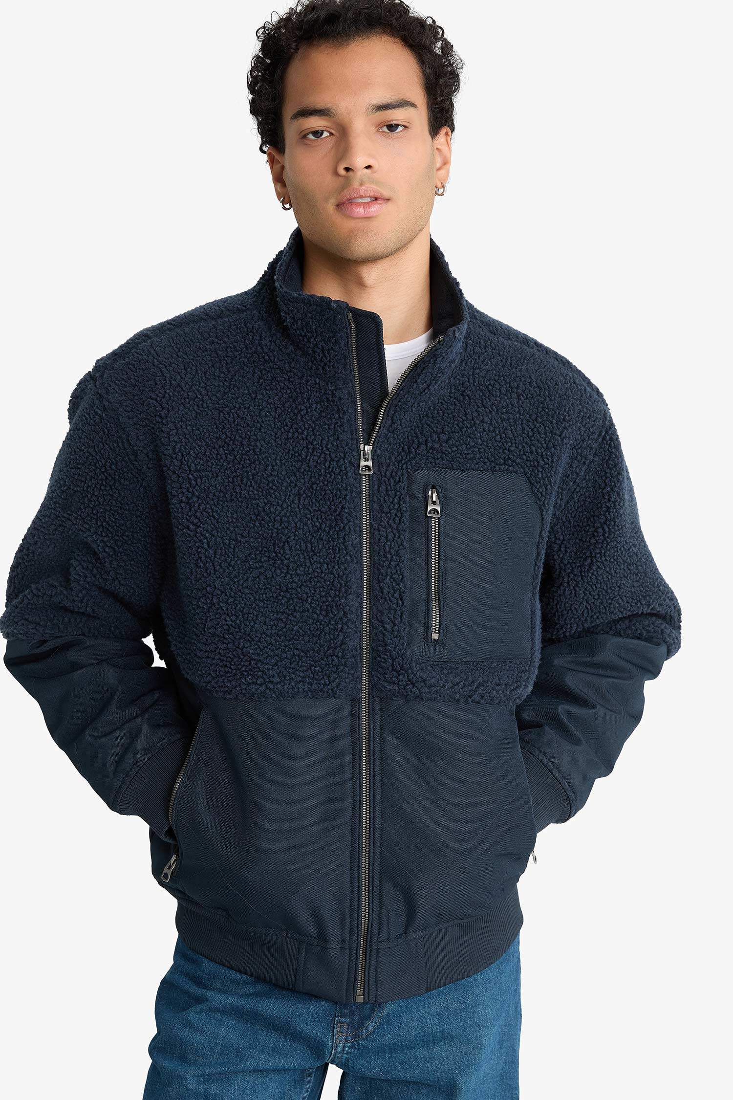 Regular Fit Plush Jacket with Knit Detail and Inner Pockets