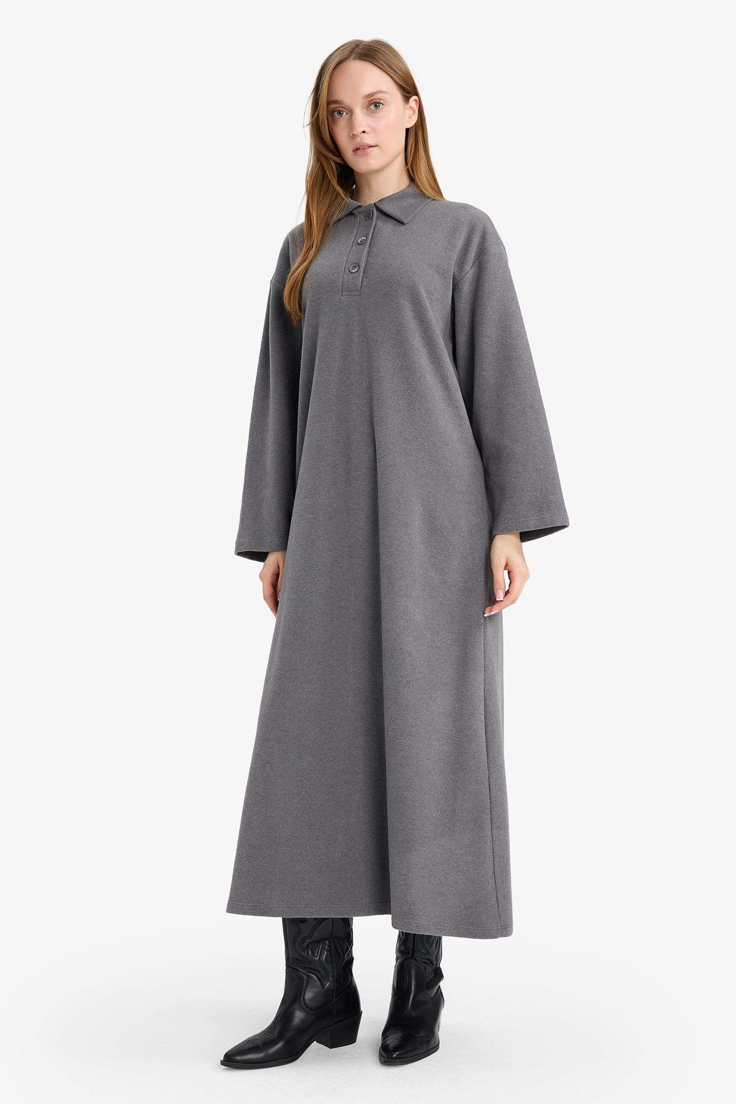 Regular Fit Polo Collar Long Sleeve Maxi Dress