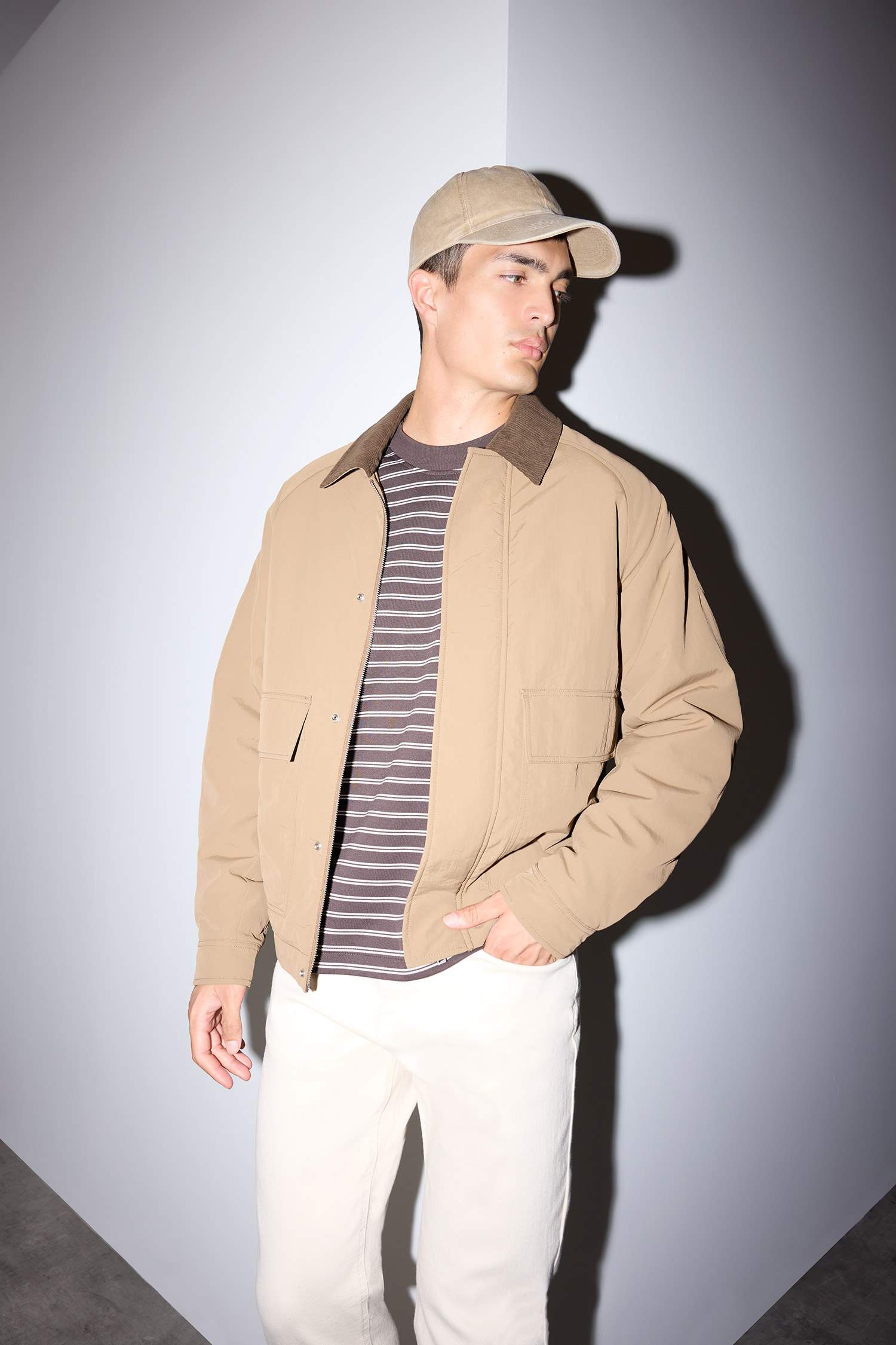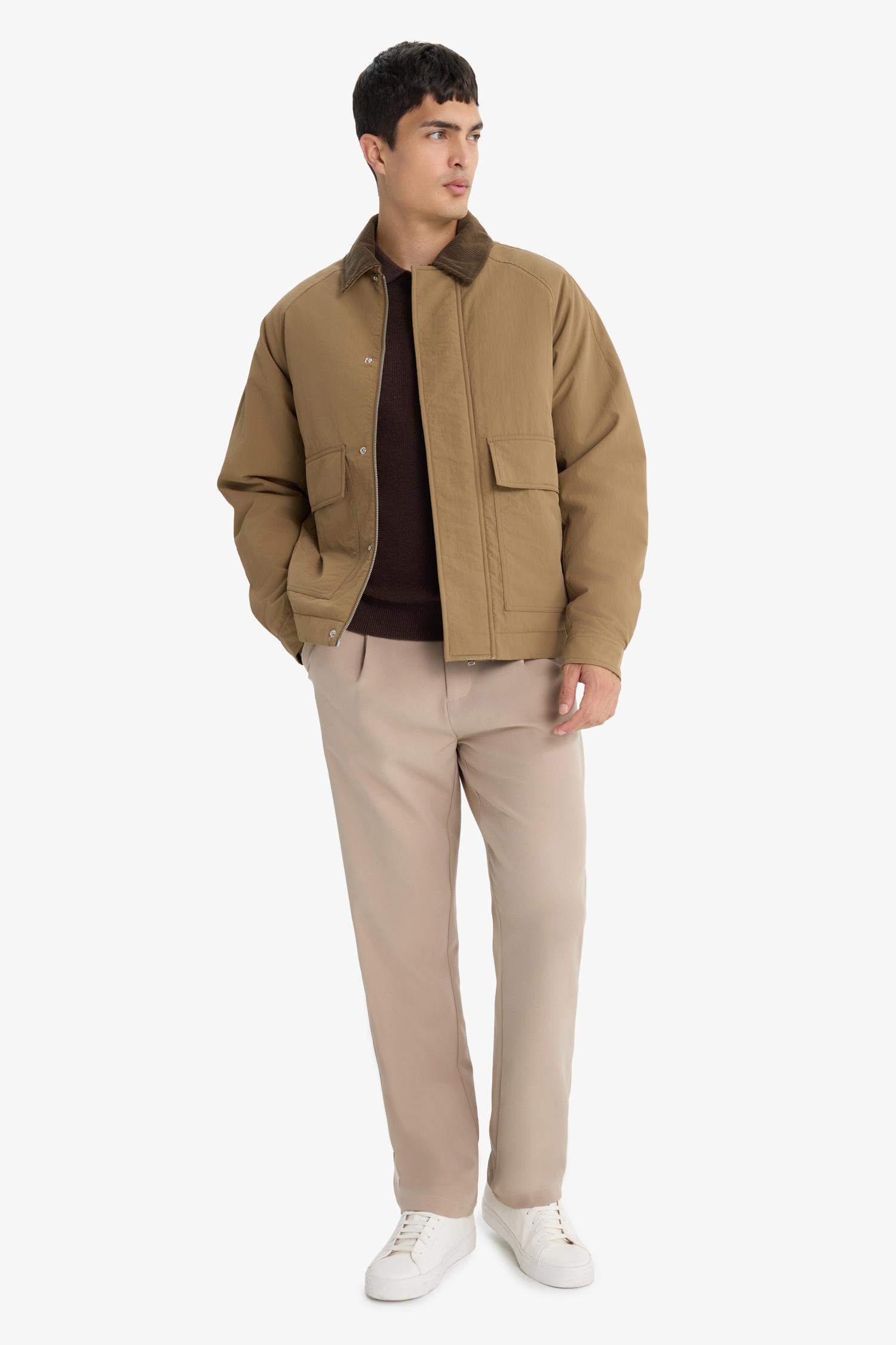 Regular Fit Shirt Collar Jacket with Inner Pockets