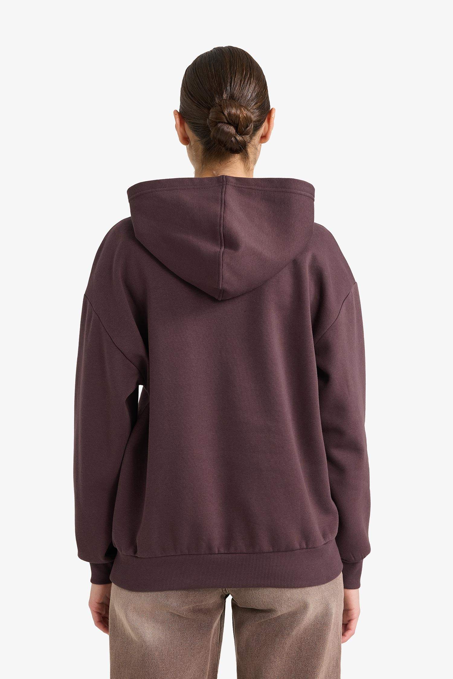 Relax Fit Hooded Printed Thick Sweatshirt