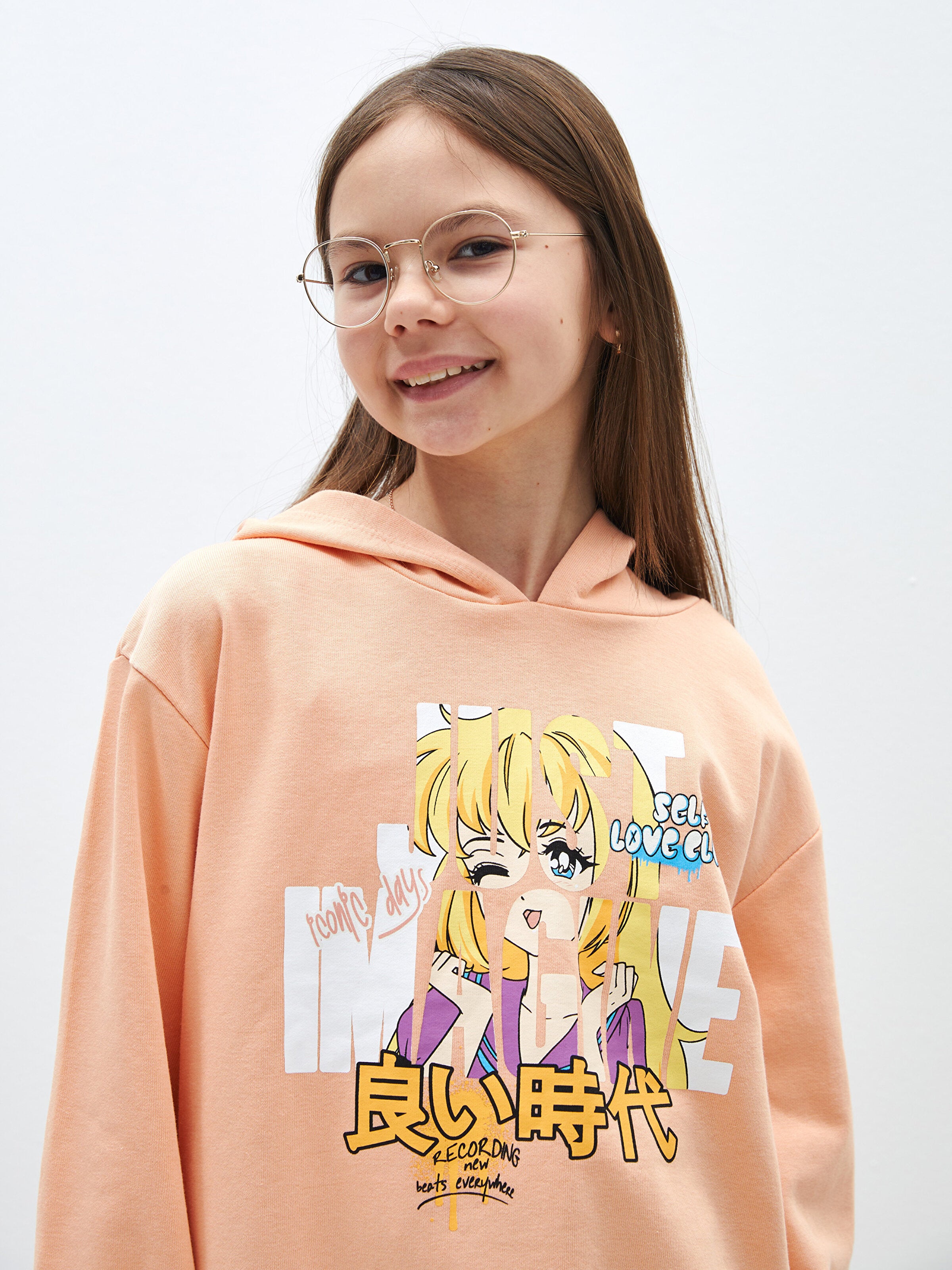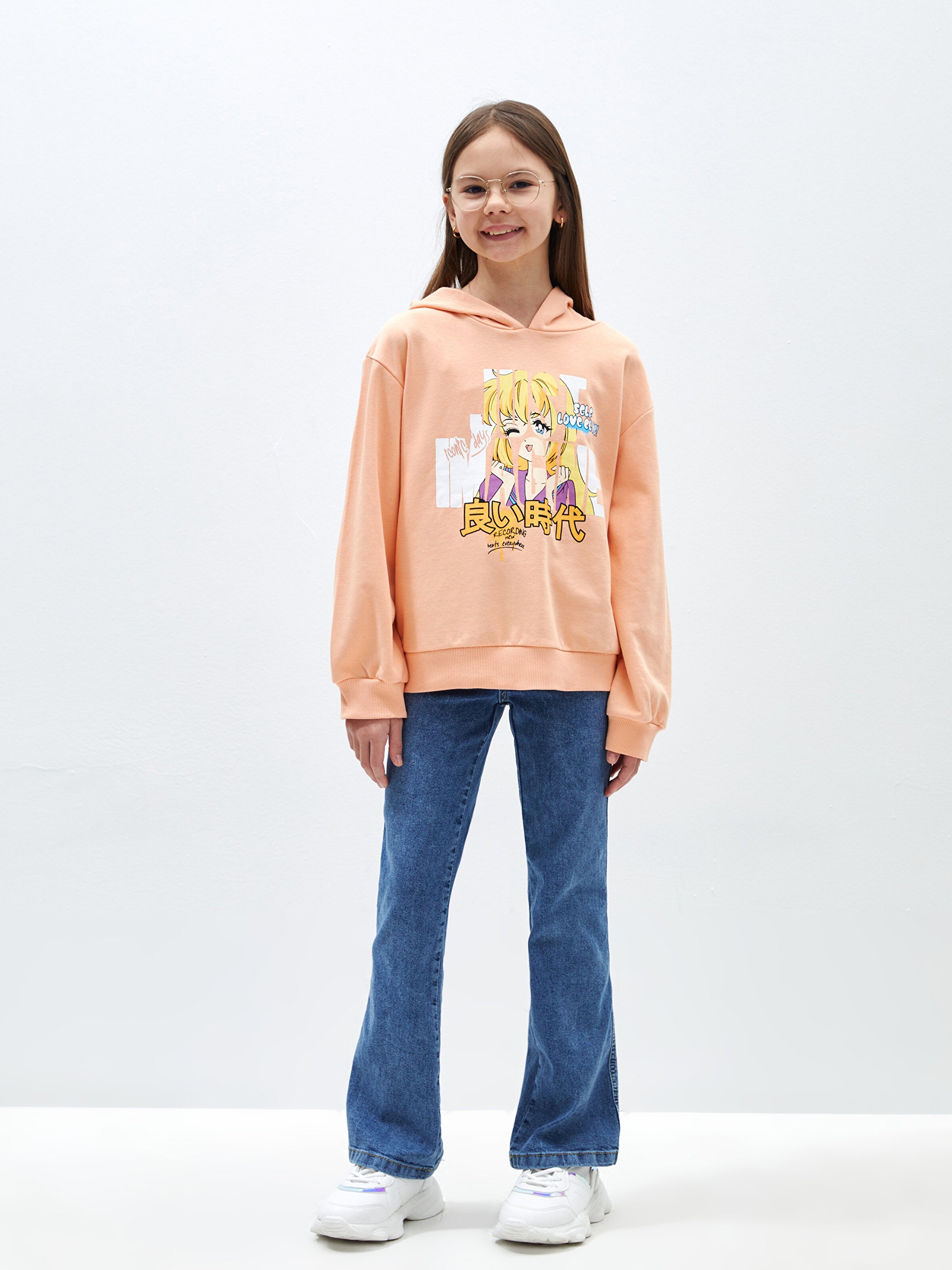 Sweatshirt with 3 yarn fabric, hoods, draws attention with its cute pressure. Cuffs and skirt end ribana details provide a comfortable sitting. Your child will have a style and comfortable style with this sweatshirt.