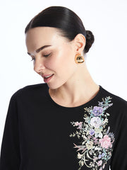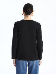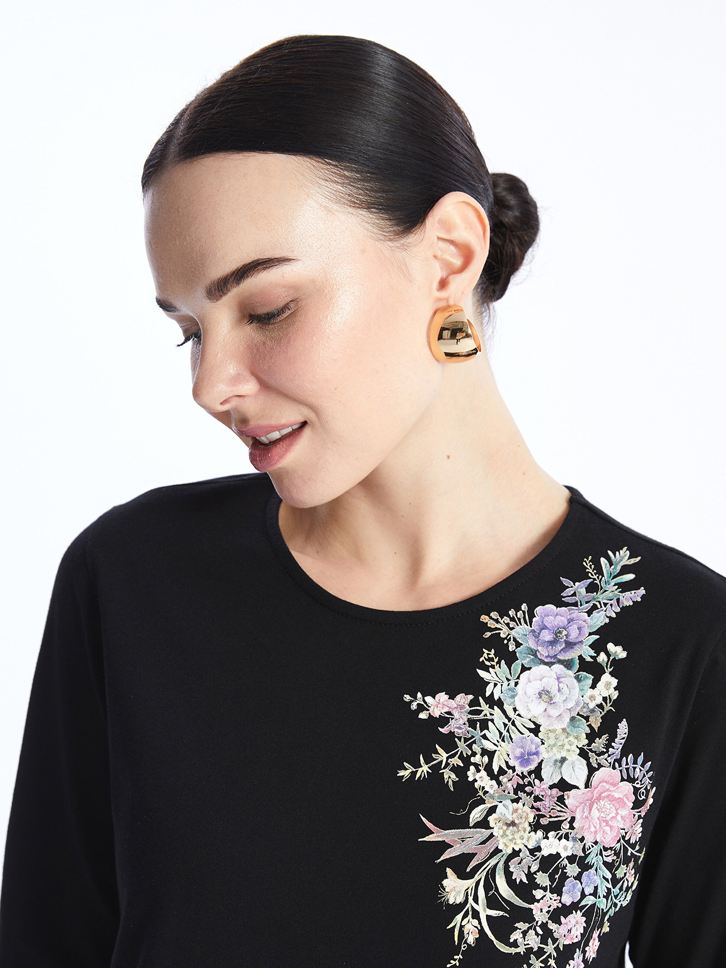 Crew Neck Printed Long Sleeve Women T-Shirt