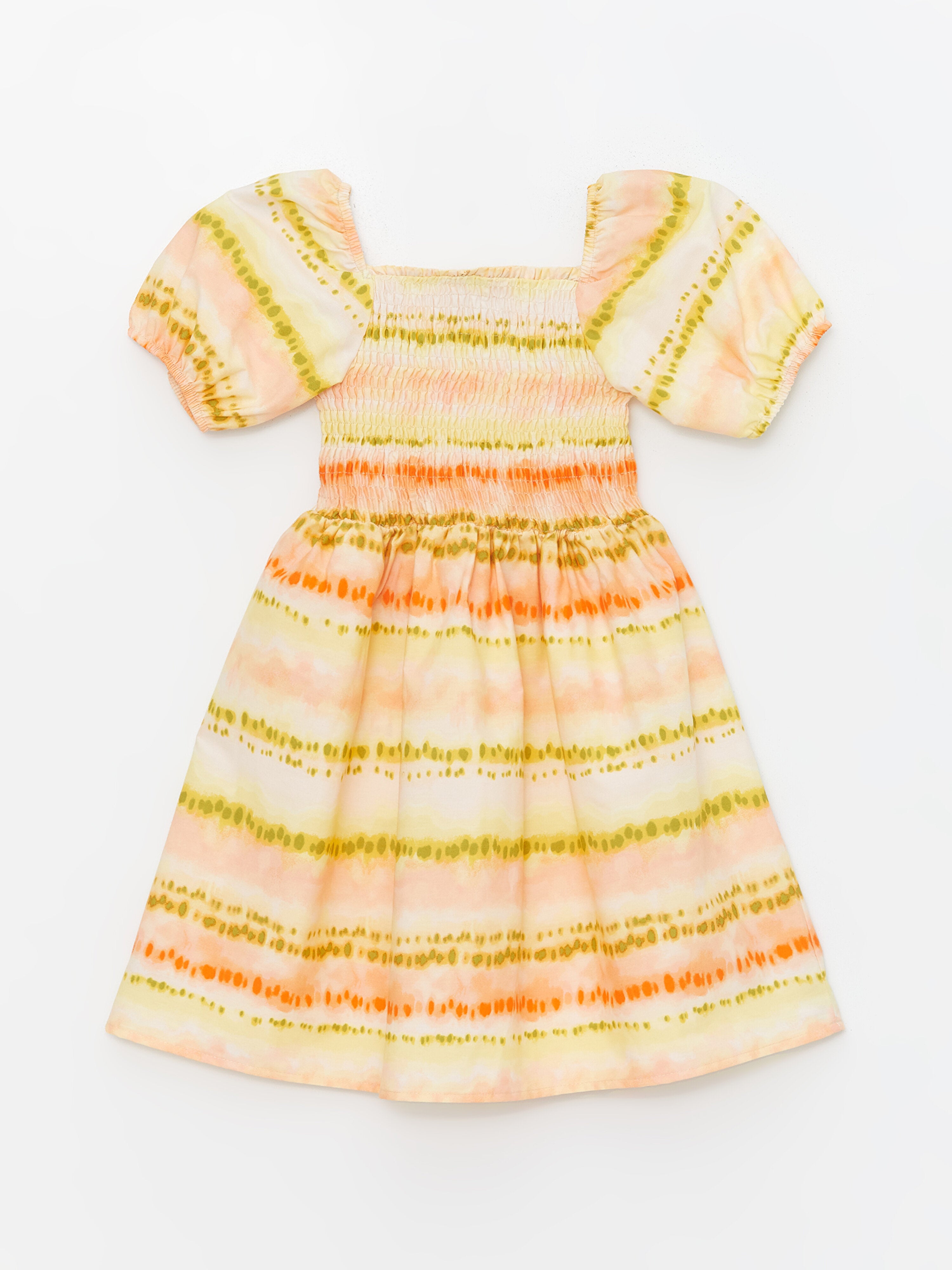 The girl's dress, which provides a cool use in summer with its poplin fabric structure, has a square neck design. Batik patterns provide your children with a stylish and cute look.
