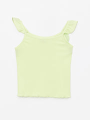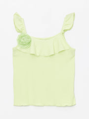 The girls' undershirt draws attention with its elegant square neck design and flower applique. While the ruffle detail adds a stylish touch to the tank top, it offers a cool and comfortable wear on summer days.