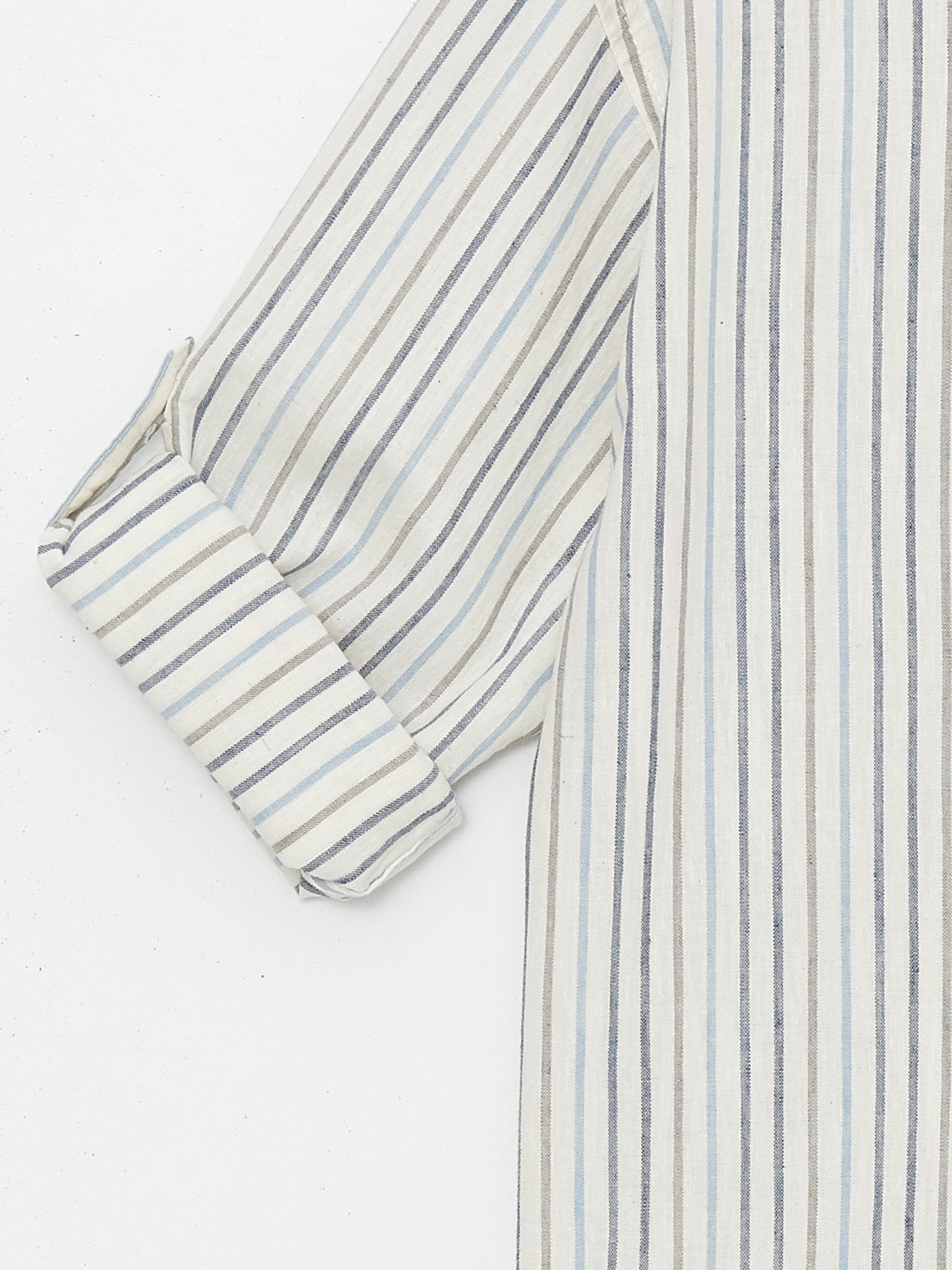 Offering a classic elegance with its striped design, the boy's shirt allows different styles thanks to its foldable sleeves and epaulette structure. A stylish and useful option for children.