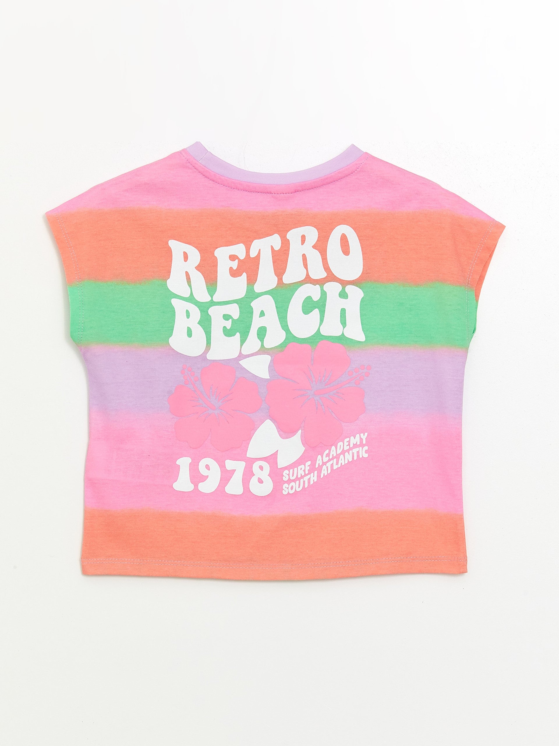 Crew Neck Color Blocked Short Sleeve Girls T-Shirt