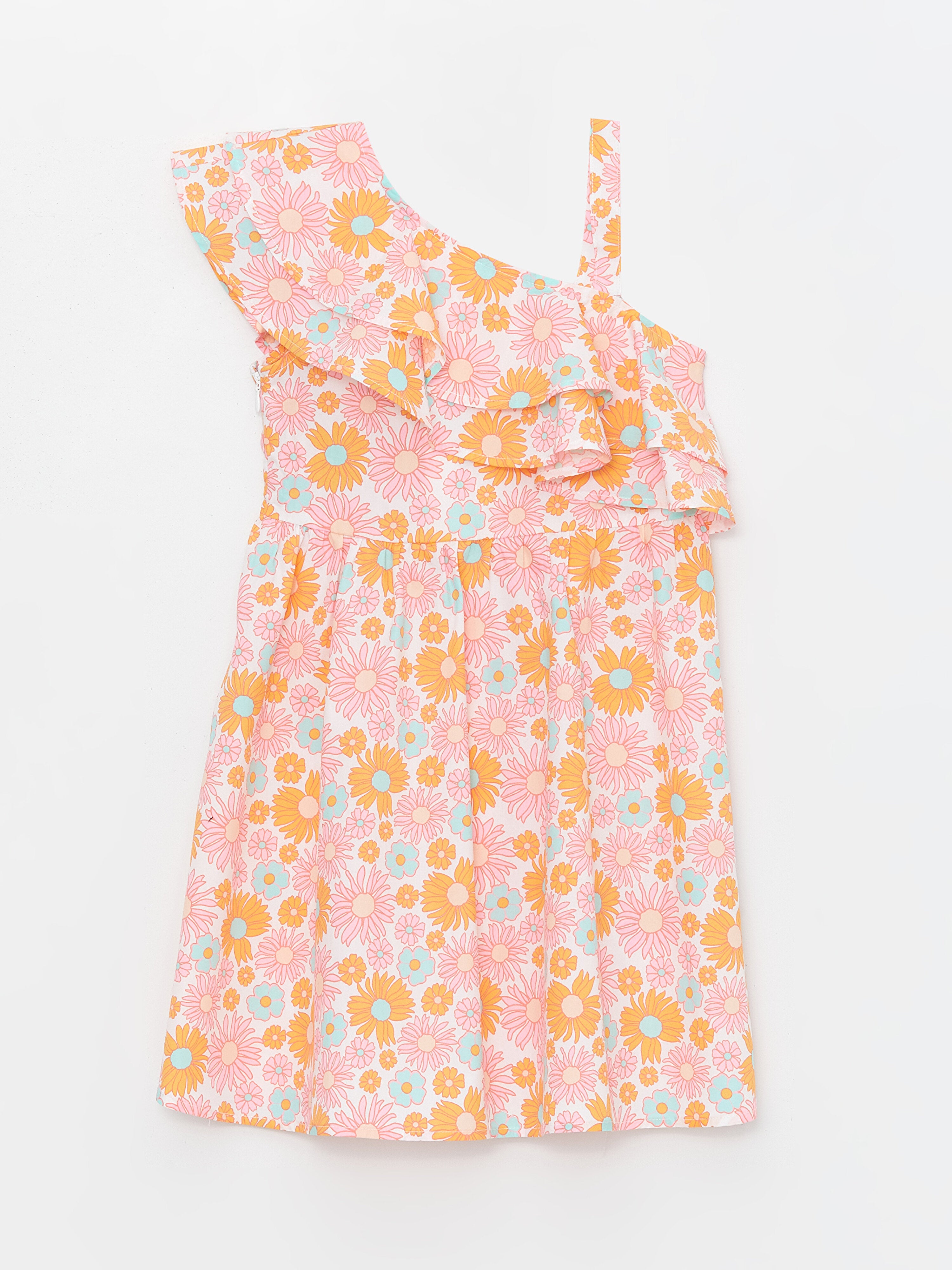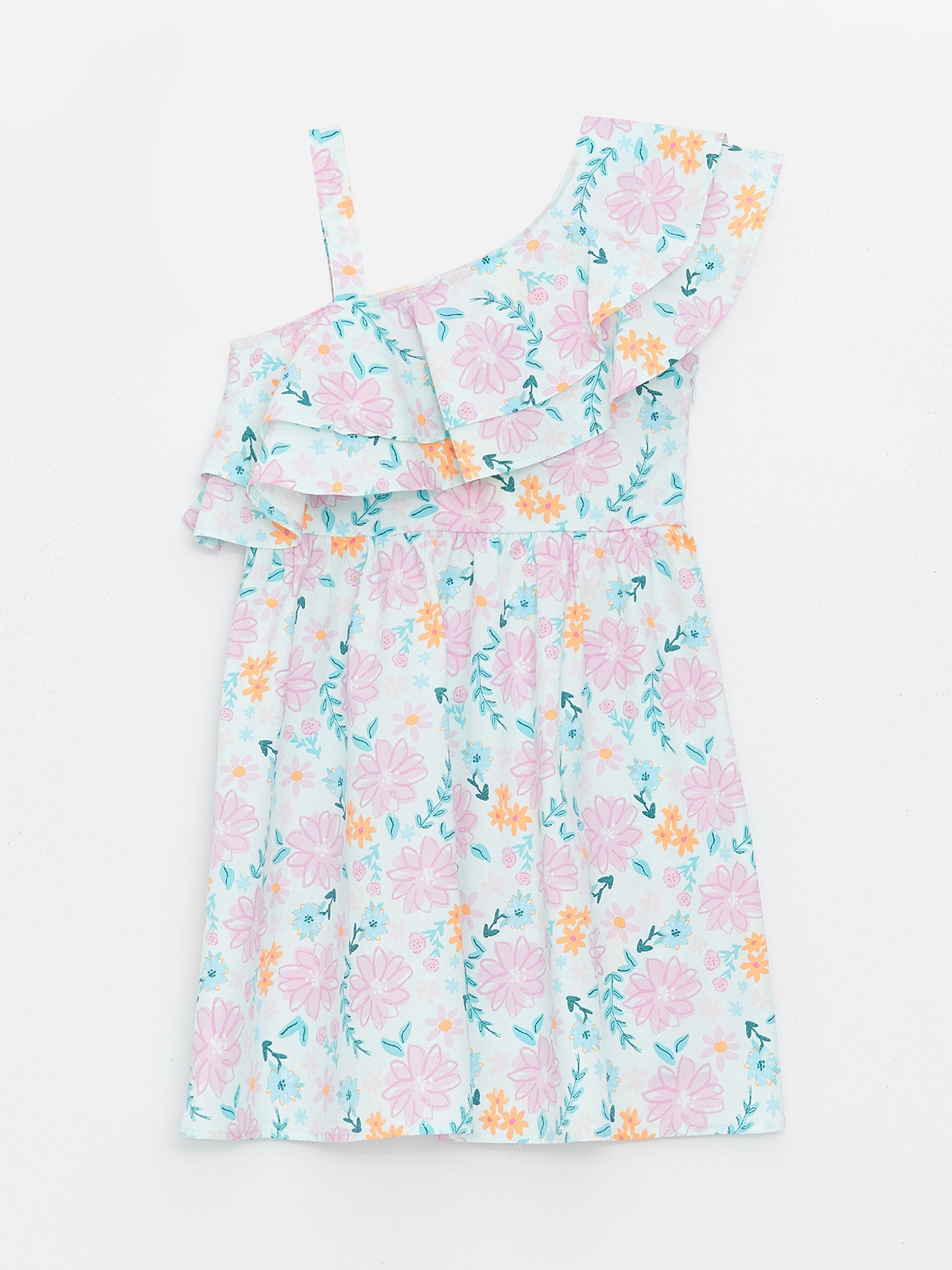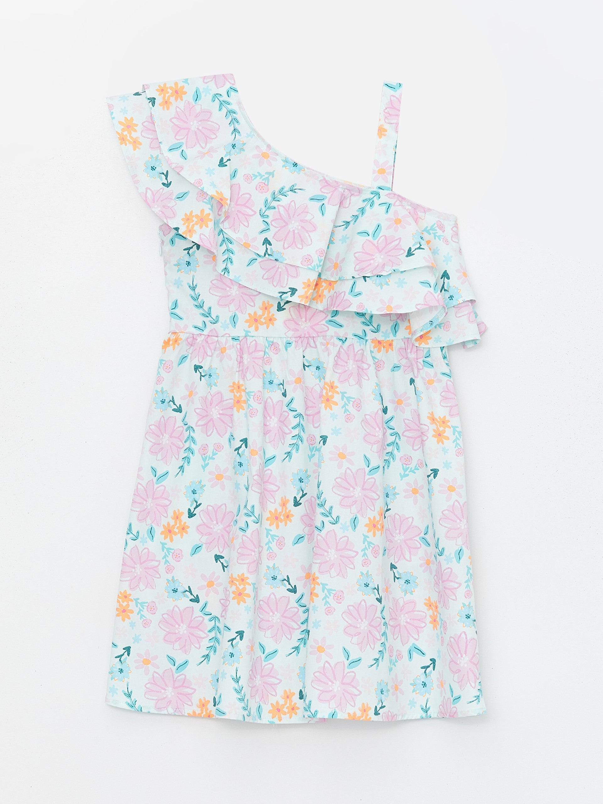 The dress, which draws attention with its one-shoulder strap design and floral patterns, is made of poplin fabric, thus offering a lightweight and breathable structure. The flounce detail on the neckline adds extra movement to the dress and offers your child a modern look.